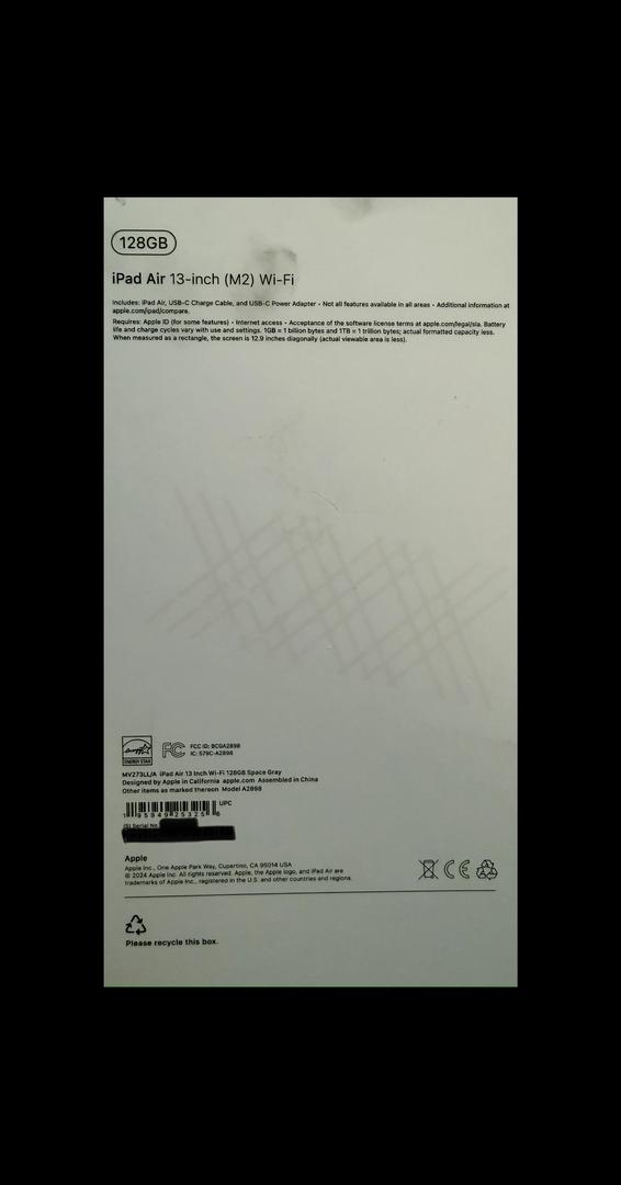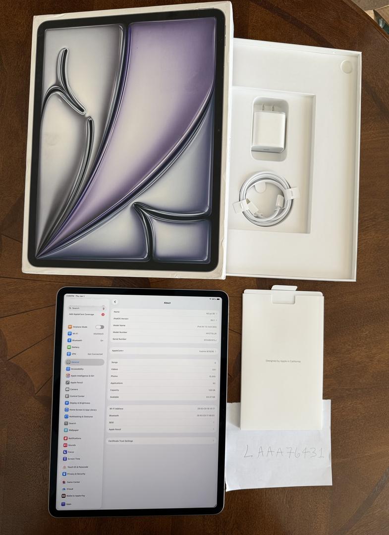 Adult-owned and lightly used iPad Air 13-inch (M2), Wi-Fi, 128GB in mint condition. Always used with a screen protector and protective cover, so the screen and body are in excellent shape with no scratches, dents, or damage.