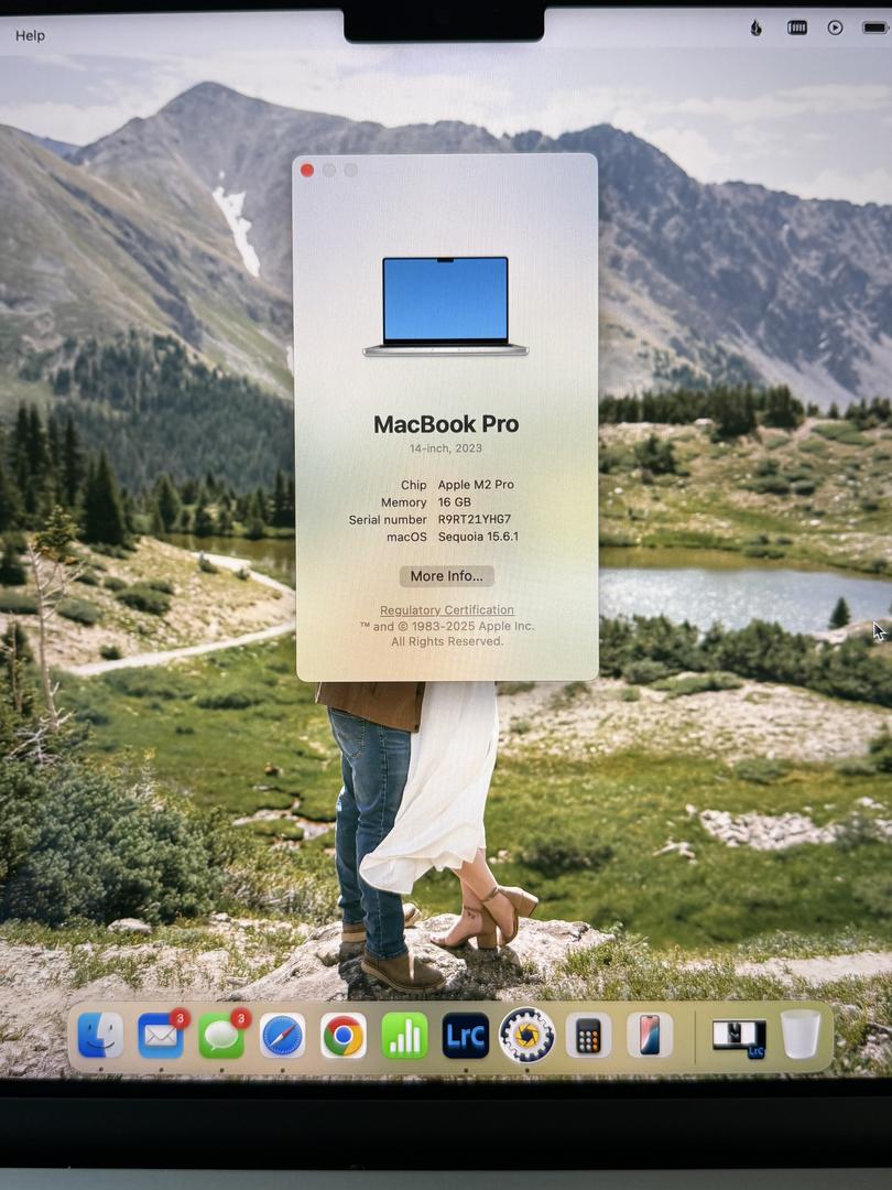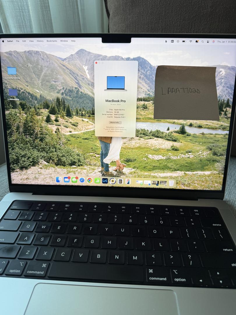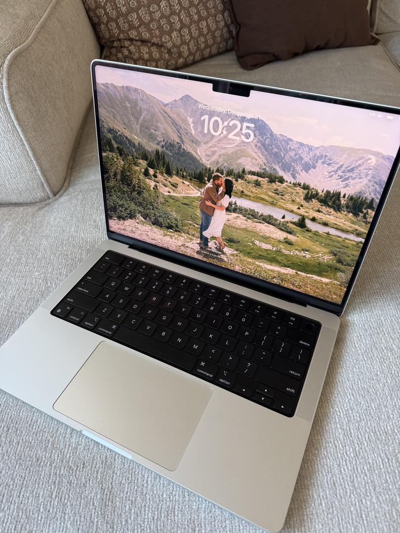 Well cared for MacBook Pro M2 14” laptop! Always kept clean and air dusted. Used for editing for my photography business. Never dropped. 2 small scratches on the bottom side. Otherwise, in excellent condition. Runs perfectly and smoothly. Retired from photography so no longer need! Comes with charger and original box.