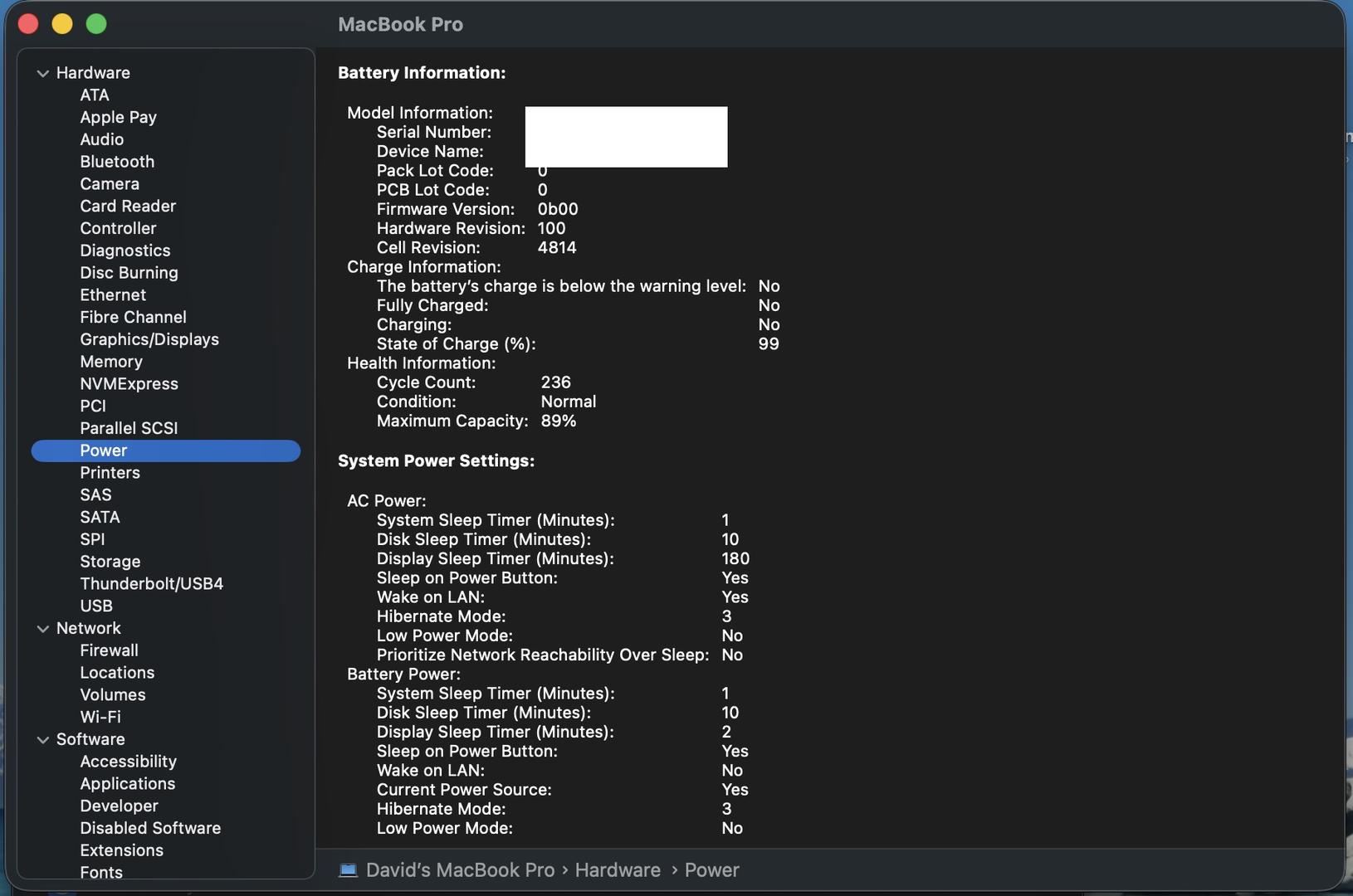 This MacBook is 100% fully functional. There are some tiny scratches on the left port side. Some keys on the keyboard may appear a bit shiny (spare laptop keys included). The laptop has 89% battery capacity with 236 cycles.
