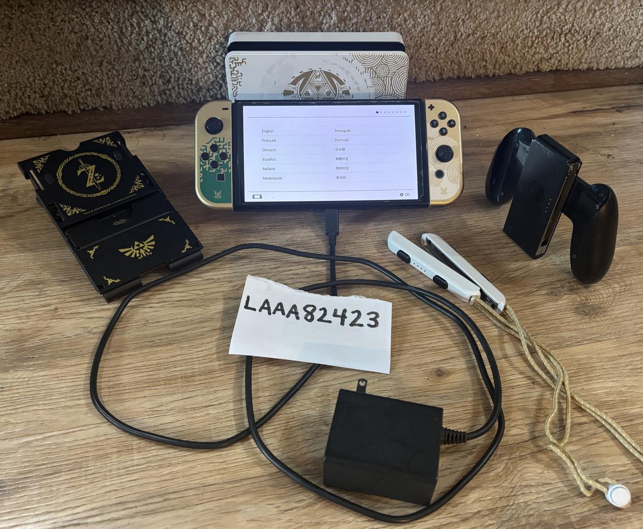 Tablet, dock, stand, joycons, wrist straps, power cord, and controller included