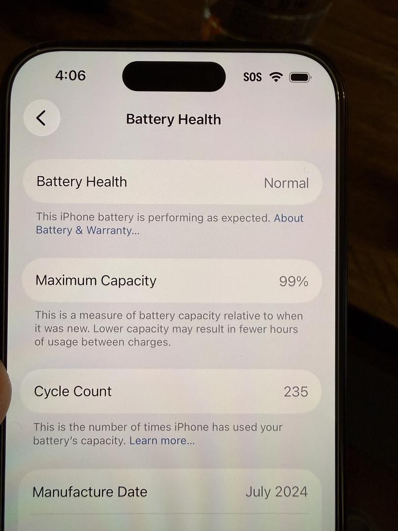 Battery health is 99% and cycle count is 235. I took a picture and added it to the listing