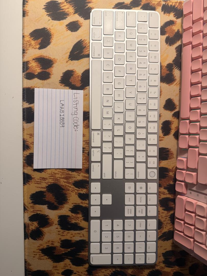 apple magic keyboard with touch id and numpad in excellent condition with a small ding on the bottom left corner. (does not affect functionality; see photos). Keyboard works perfectly.