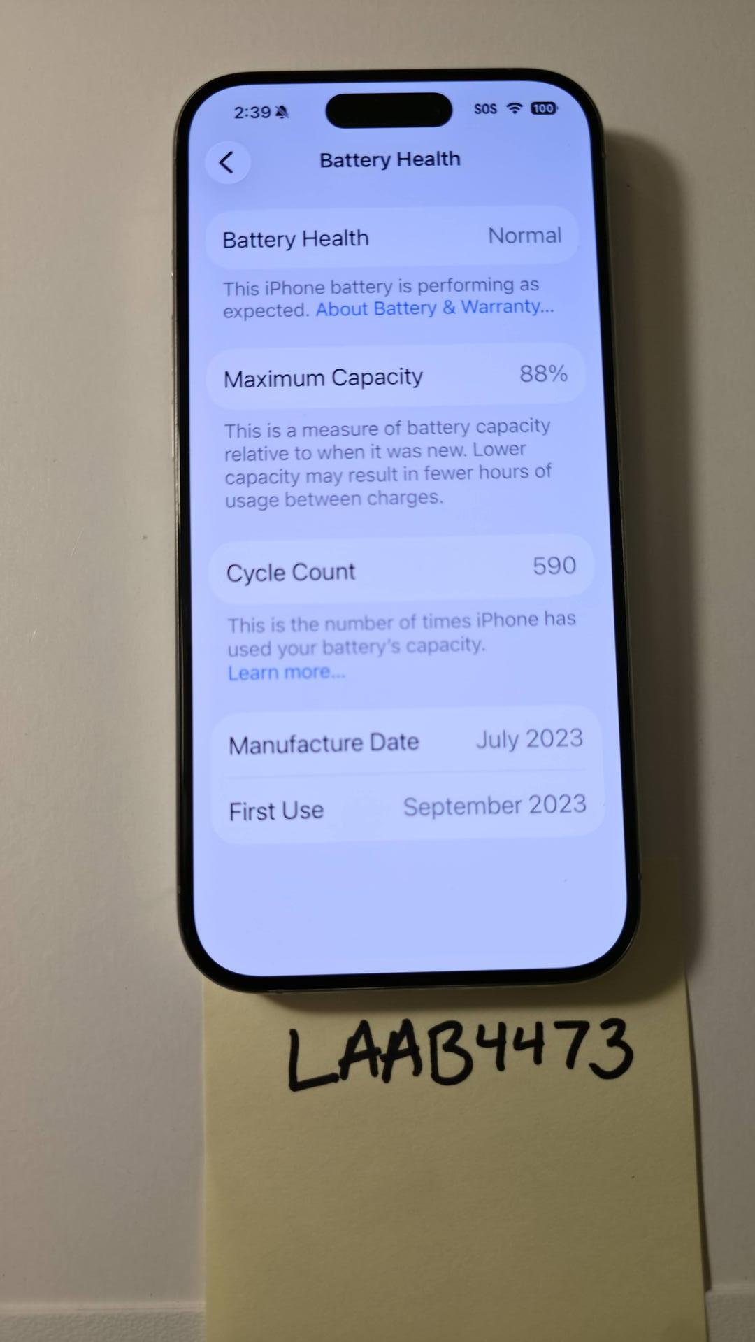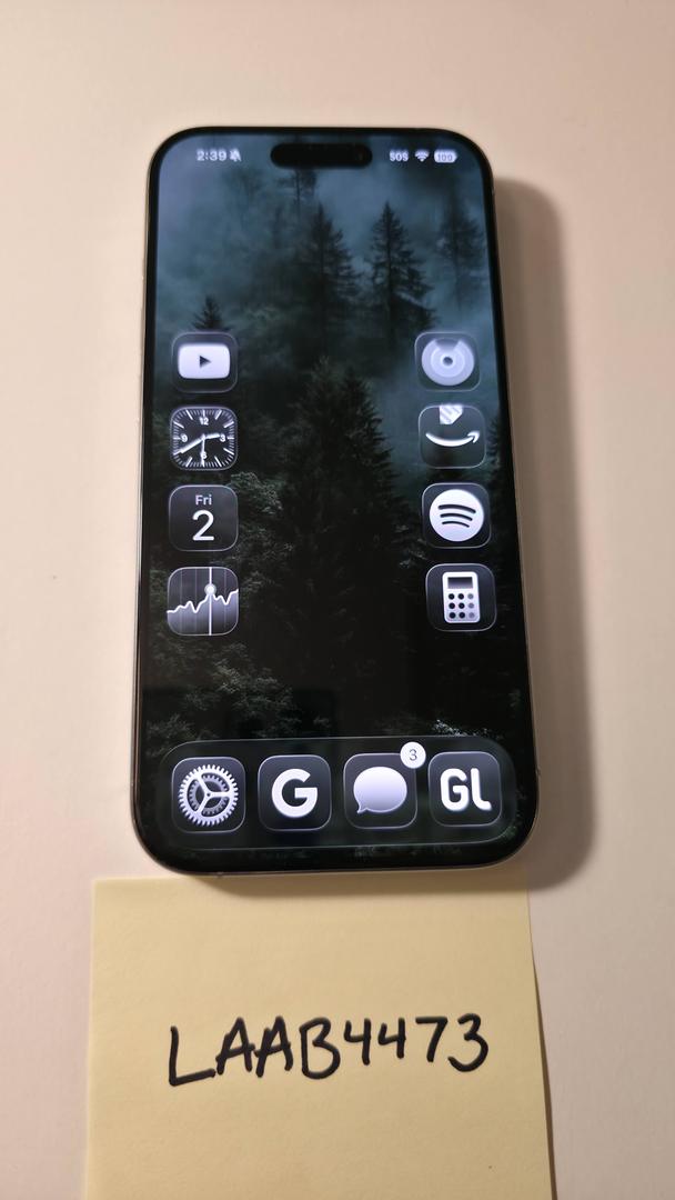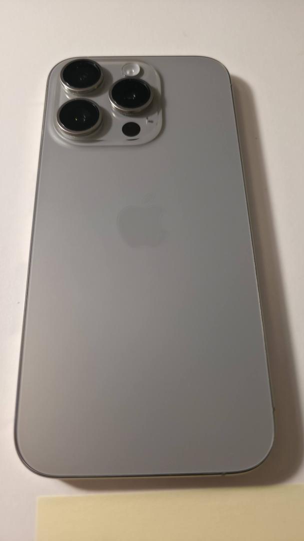 Excellent condition. Always in a case. Near Mint iPhone 15 Pro - Natural (light gray) color - 100% functional. One minor scratch on screen, but it is not noticeable. Great Phone!