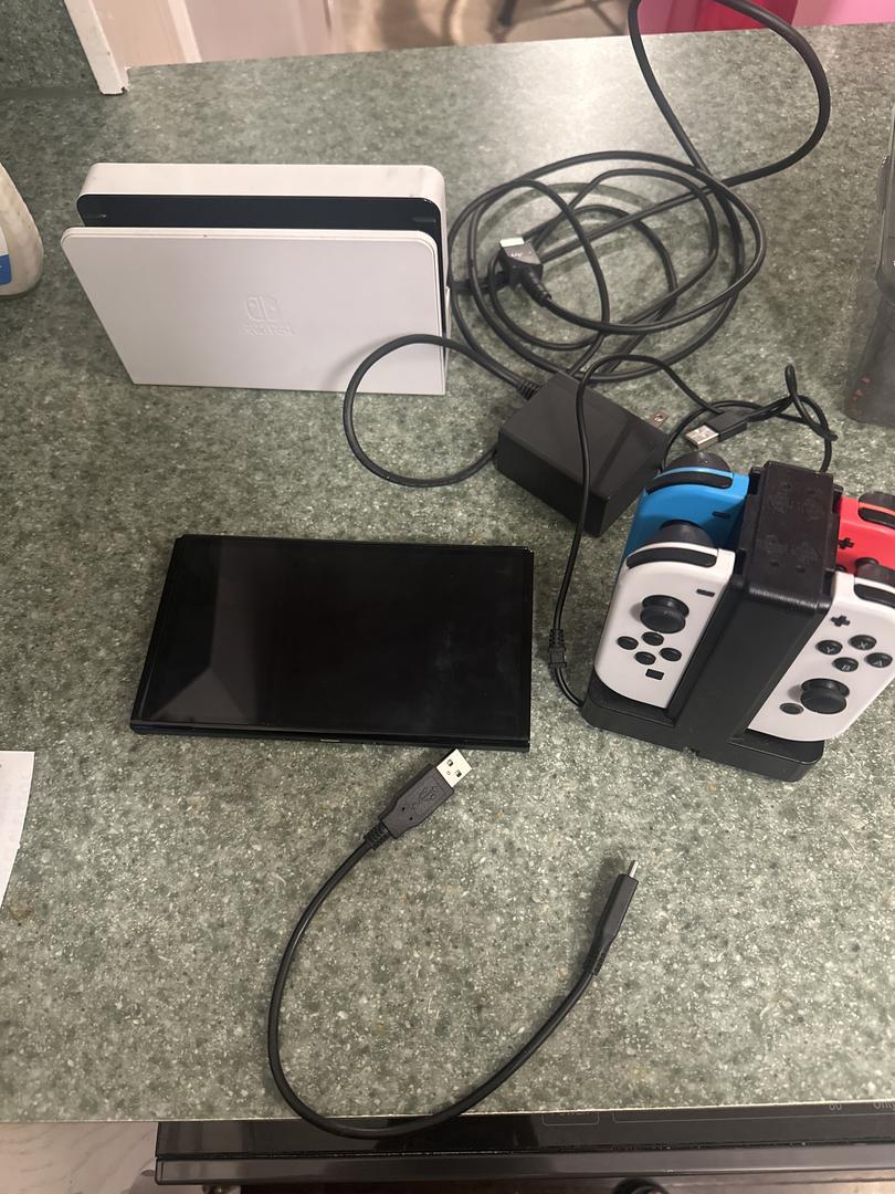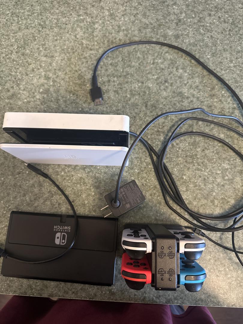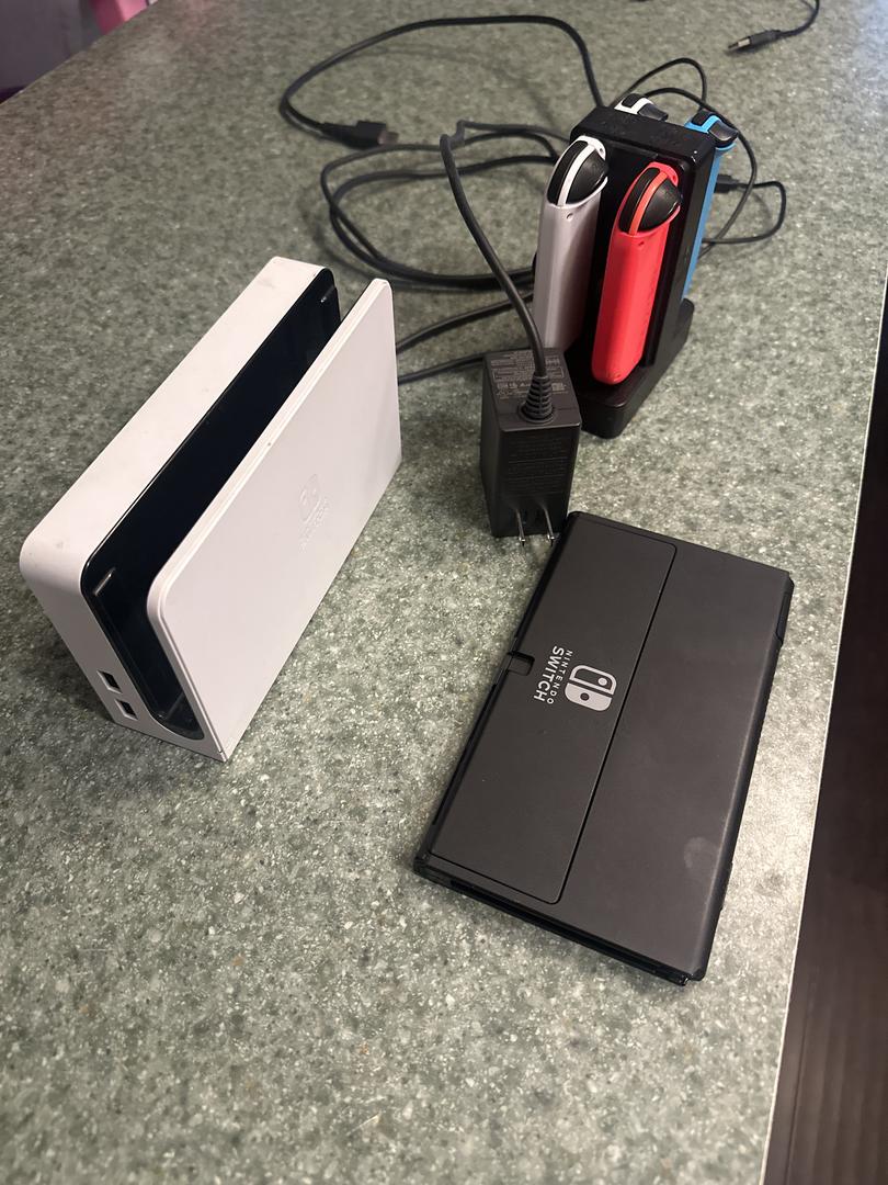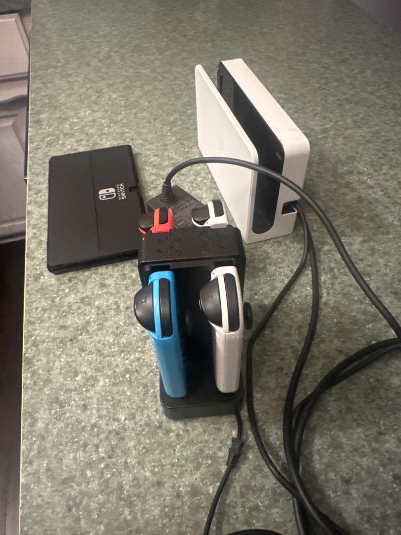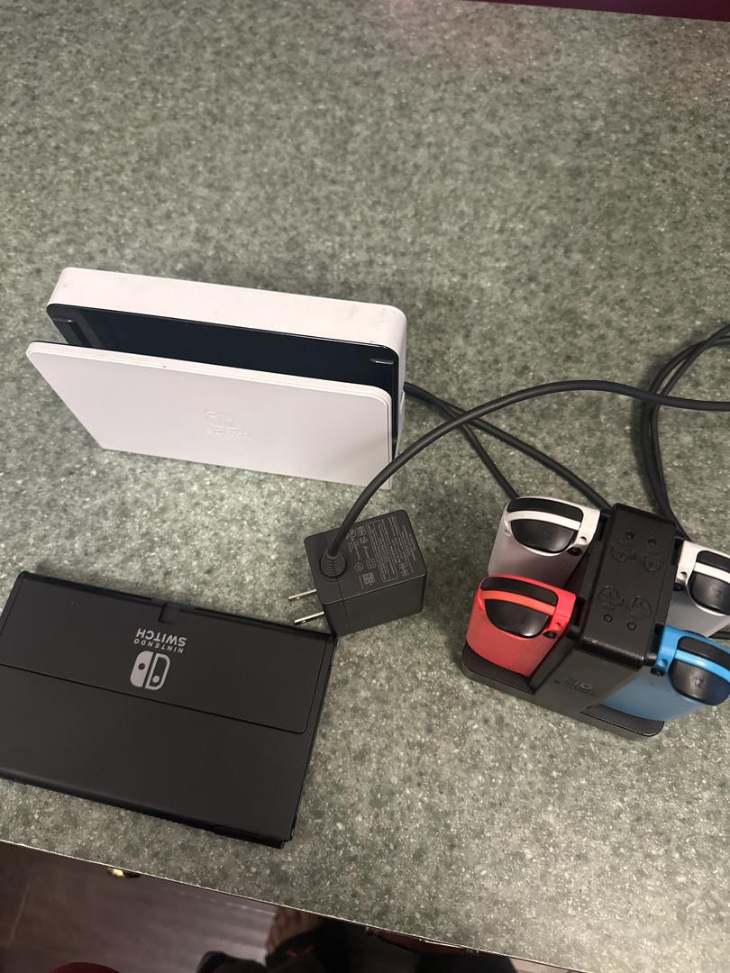Nintendo Switch that is flawless with 4 controllers, dock station, HDMI cords, and charging station for controllers
