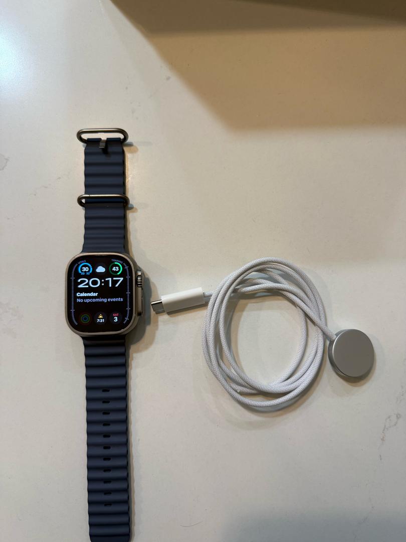 Great watch! Selling due to having a Garmin Watch. Includes Robust brand titanium band and Robust brown leather band. Pictures with Apple band which is also included. Will be shipped with charging cord