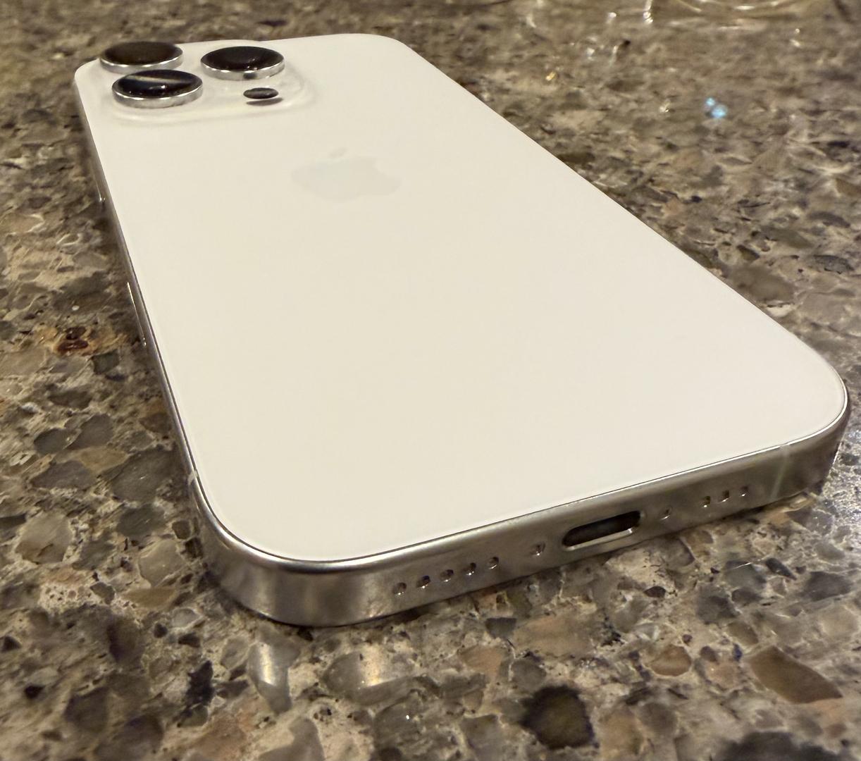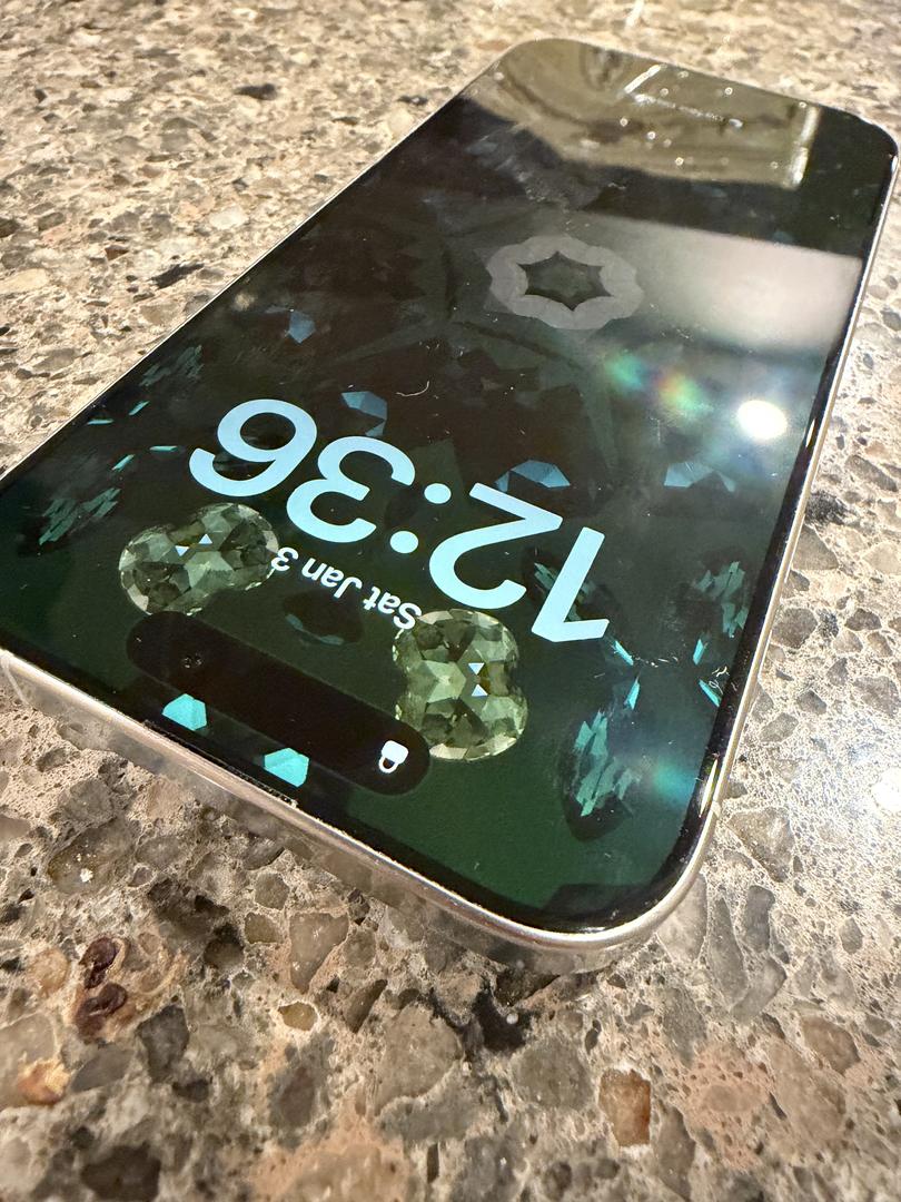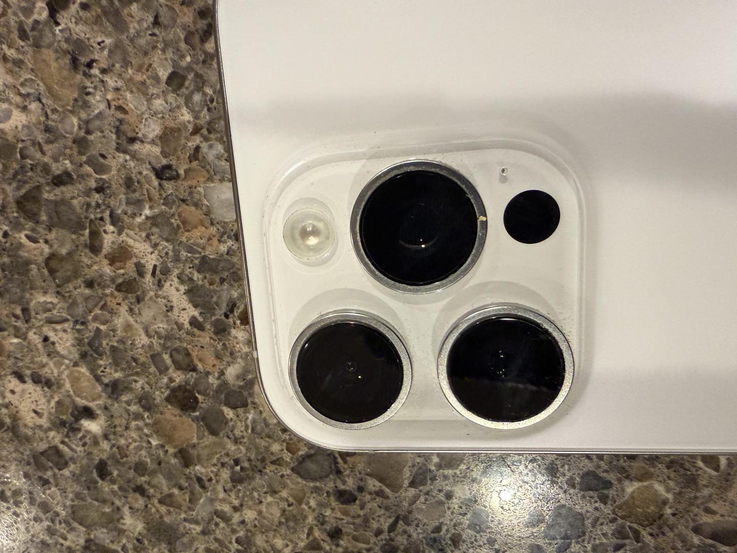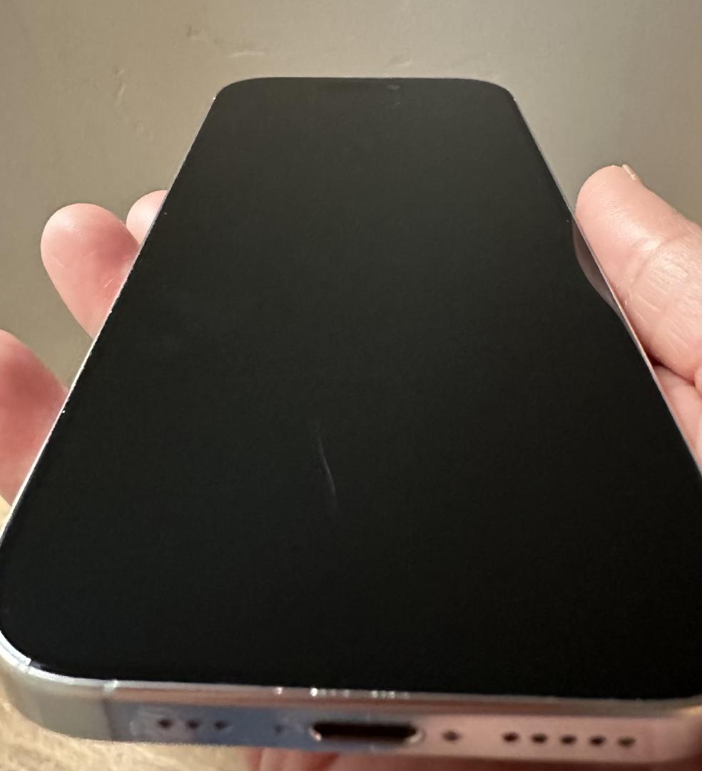 There is a small feelable scratch on screen (see pic) otherwise in good condition. Previously, the glass has been replaced through AppleCare twice. AppleCare+ is included through Sept 21, 2026