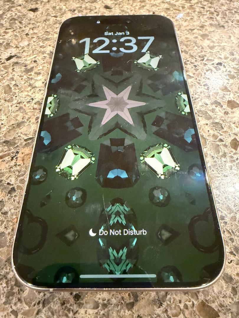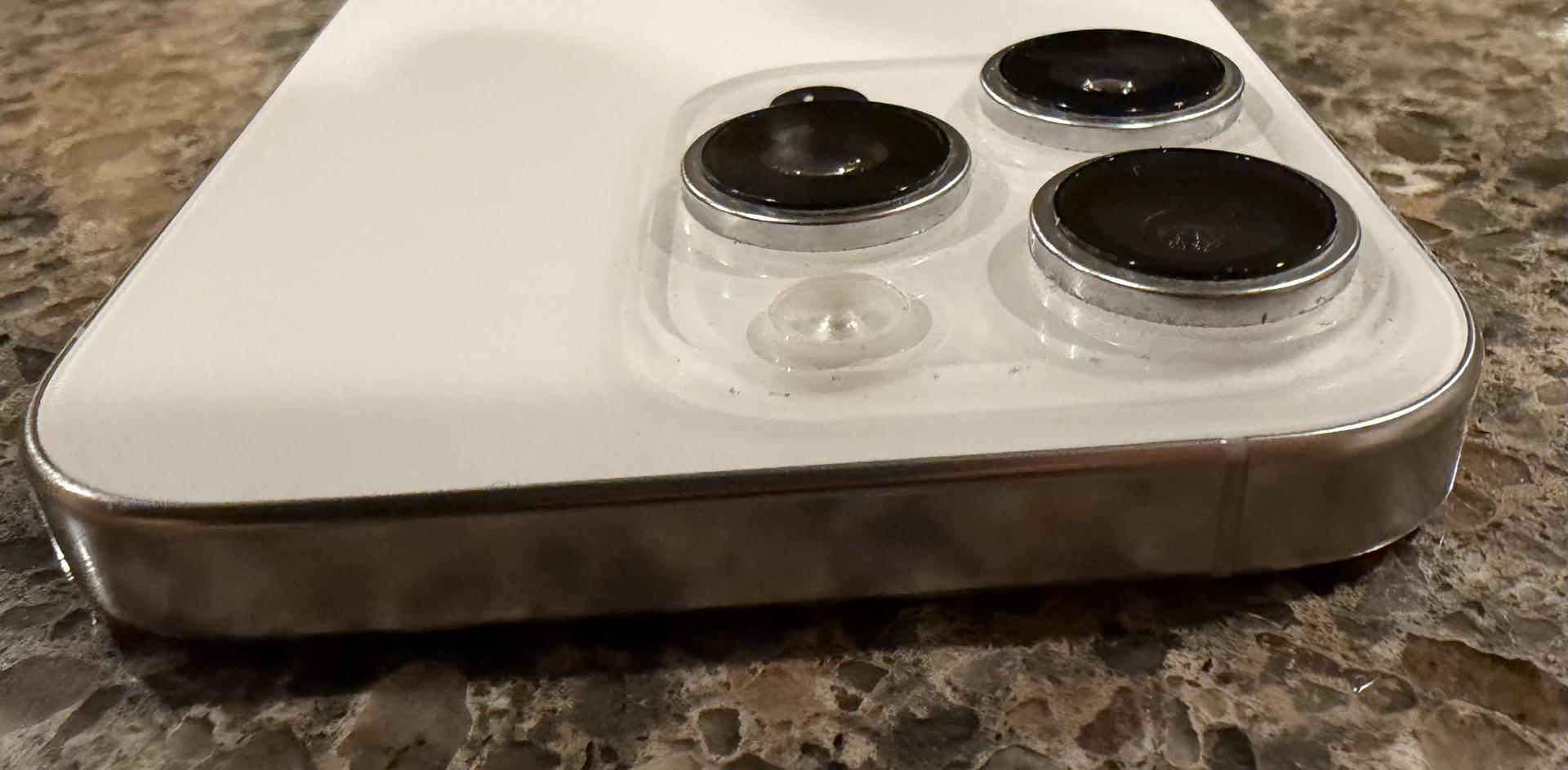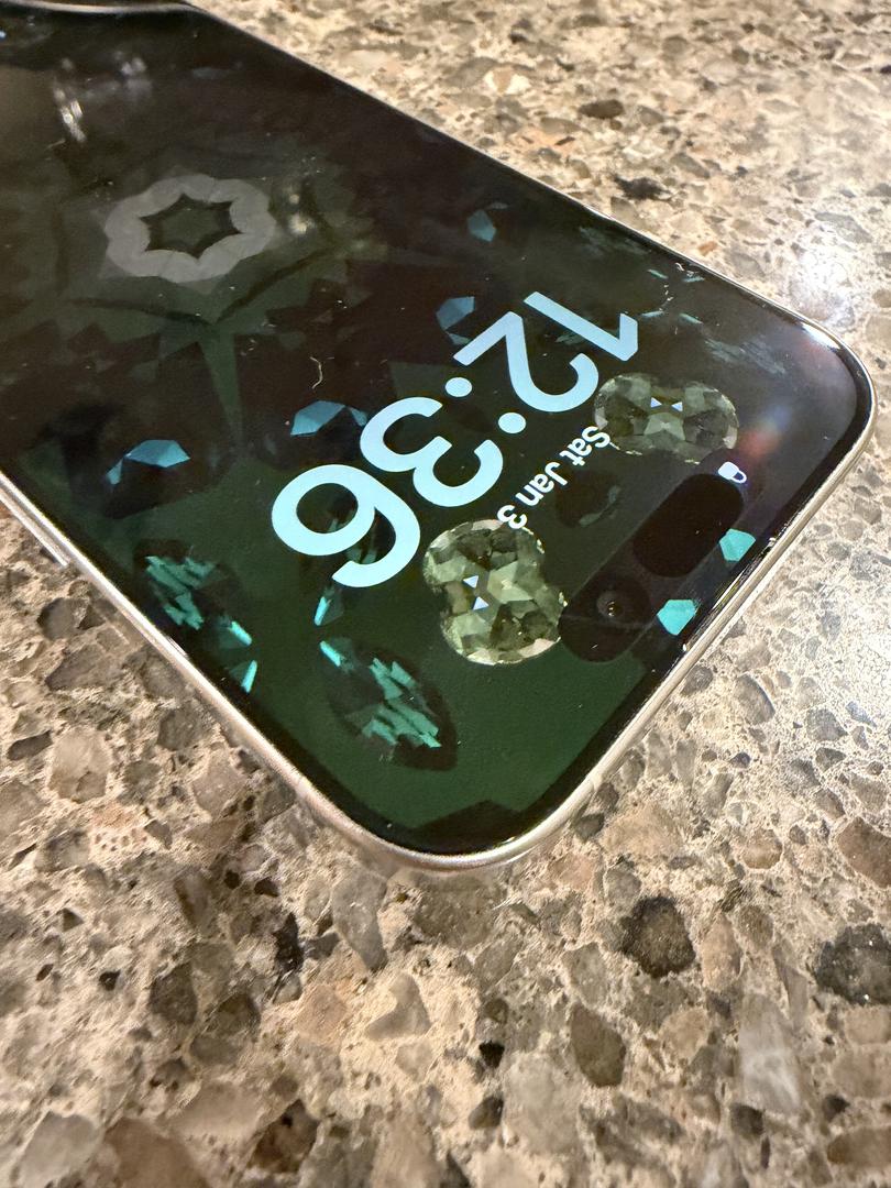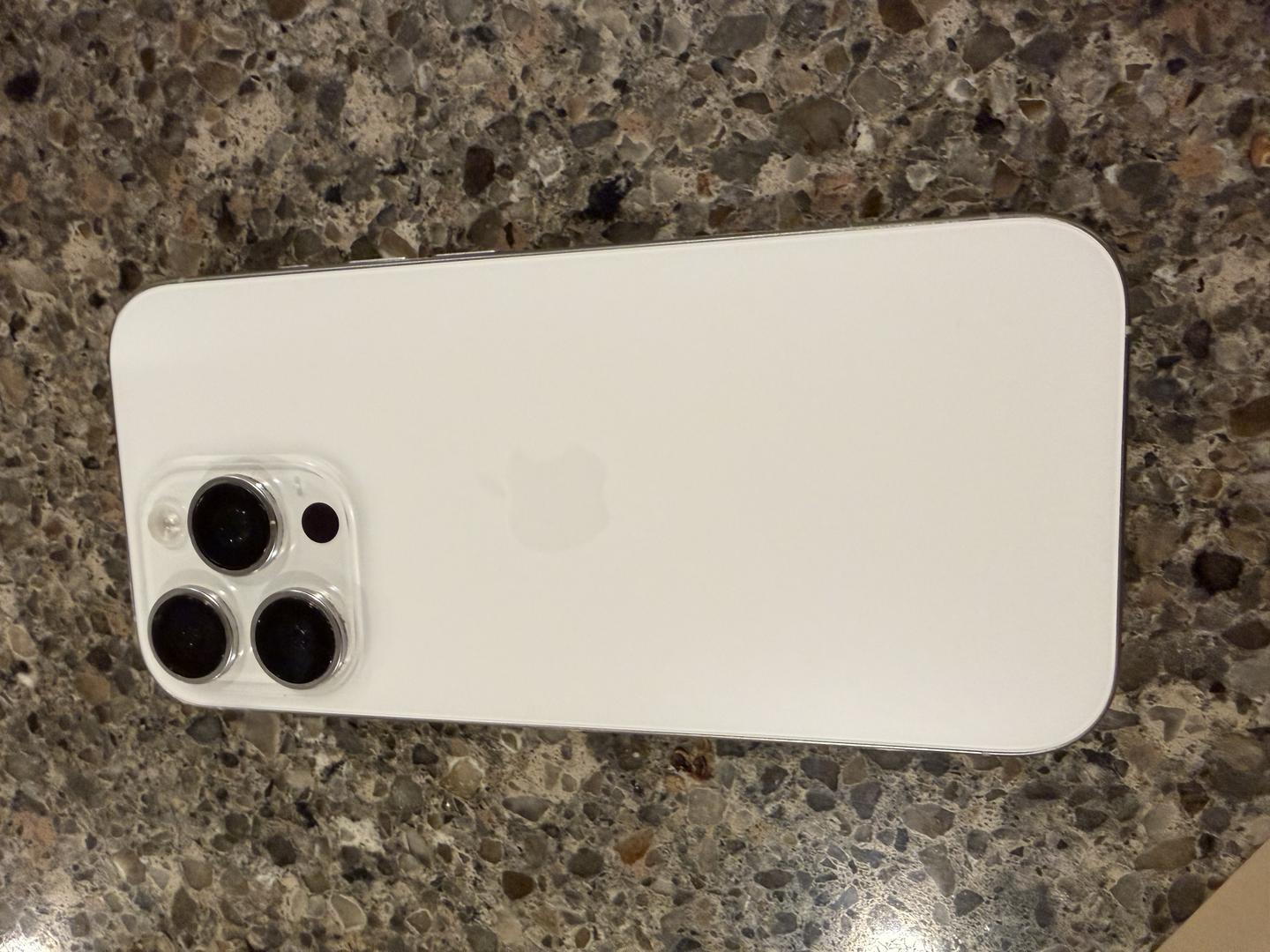 There is a small feelable scratch on screen (see pic) otherwise in good condition. Previously, the glass has been replaced through AppleCare twice. AppleCare+ is included through Sept 21, 2026