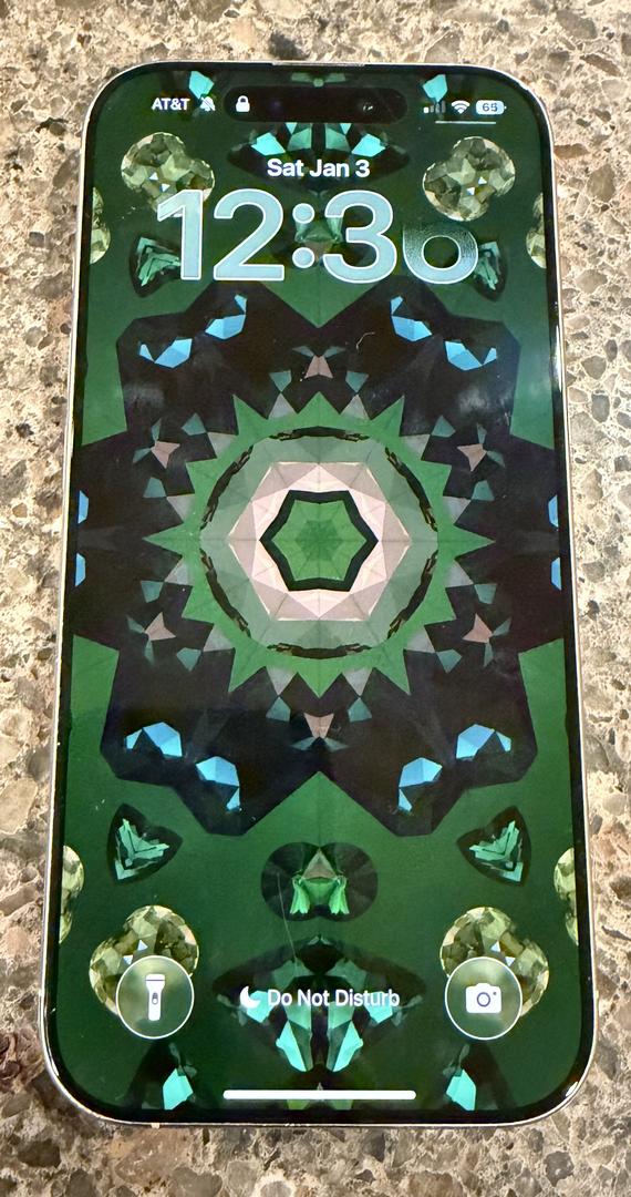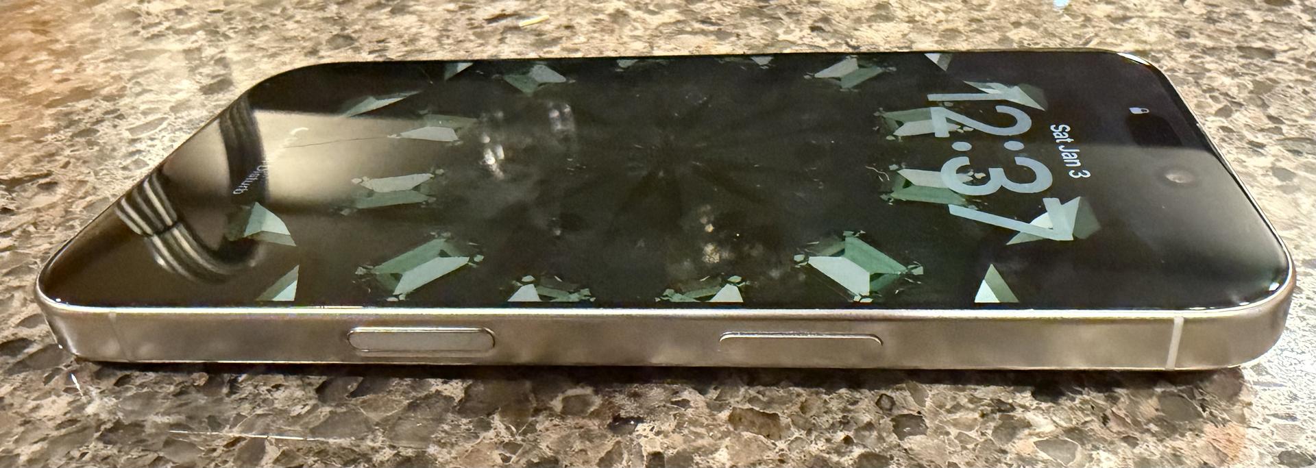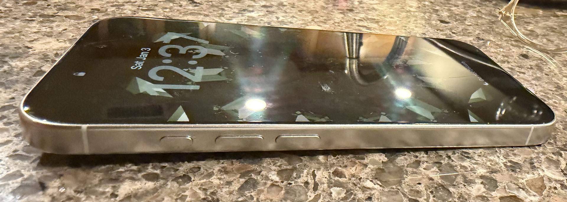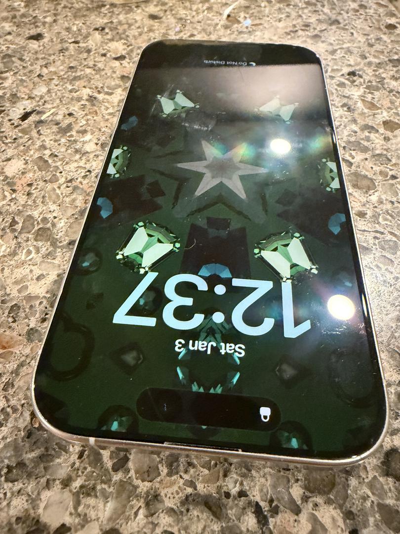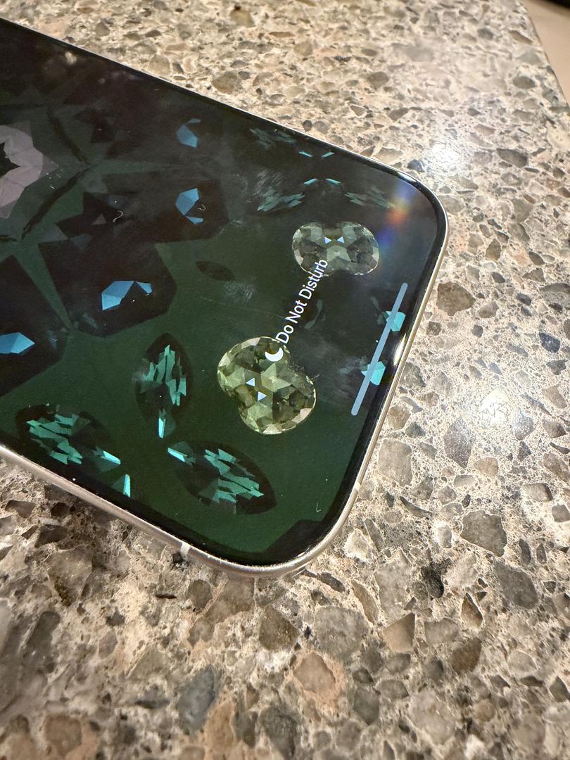 There is a small feelable scratch on screen (see pic) otherwise in good condition. Previously, the glass has been replaced through AppleCare twice. AppleCare+ is included through Sept 21, 2026