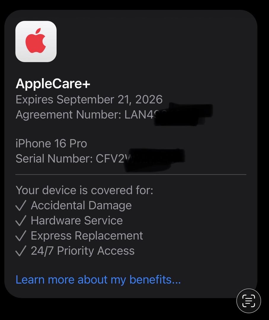 AppleCare+ transferable through September 21, 2026