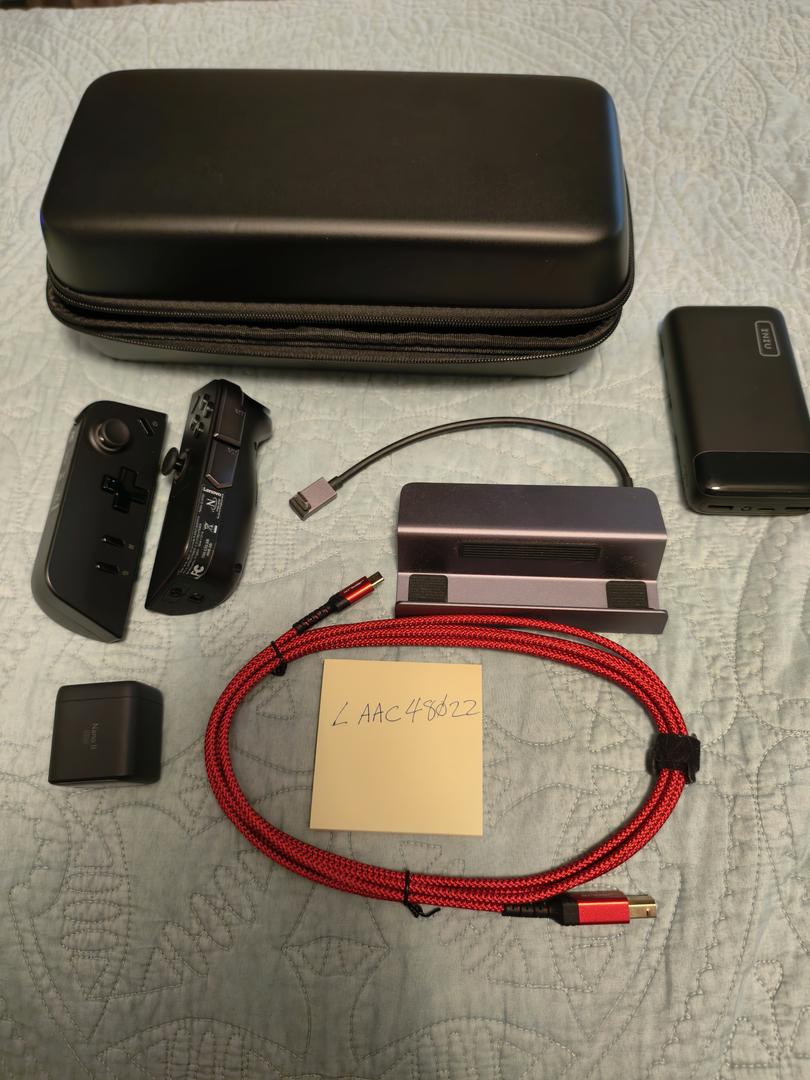 Included is a new case, Anker 65 watt charger and cable, an Anker dock, extra controllers and a portable charger.