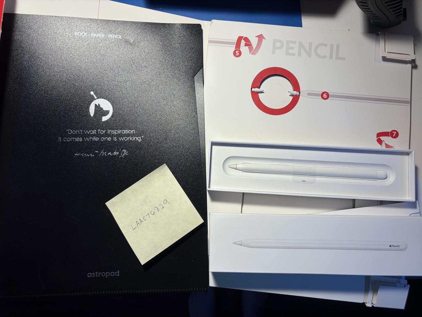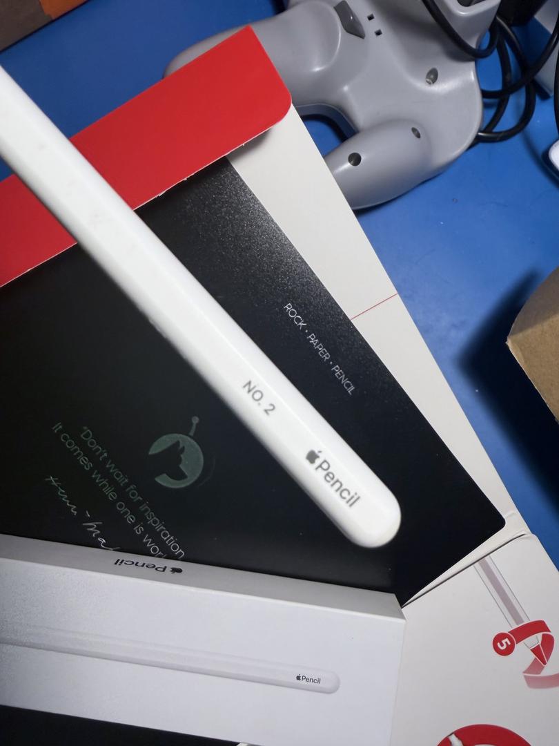 Apple Pencil 2nd Gen in near mint condition. Has an engraving that says "No. 2" (Number 2 pencil? Get the joke?) Include original unused tip and the Rock, Paper, Pencil magnetic paperlike screen protector with 2 custom tips for ultimate drawing experience. Fits iPad Pro (1st-4th Gen) and iPad Air (4th & 5th Gen).