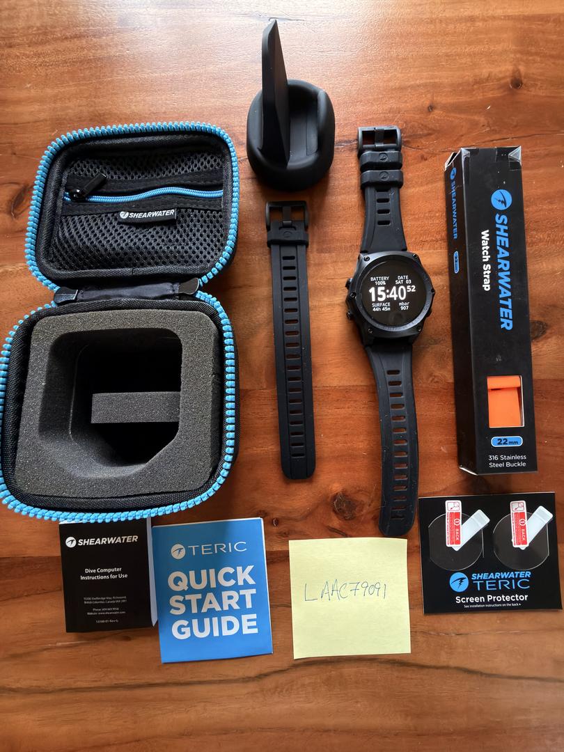 Nice dive computer with air integration and support for technical diving. 71 dives on it. Originally bought in 2022. It has always had a stick-on screen protector over the screen, two extras included. Extra strap included.