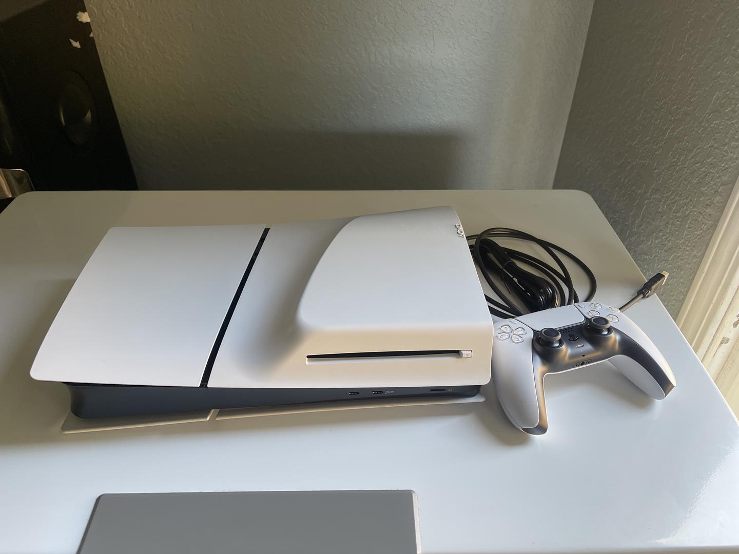 Selling this PlayStation 5 Slim Disc Drive Edition (PS5). Comes with everything needed. Cables, and controller. Consoles Has a 90 Day Limited Warranty. As long as it is not broken or water damaged.