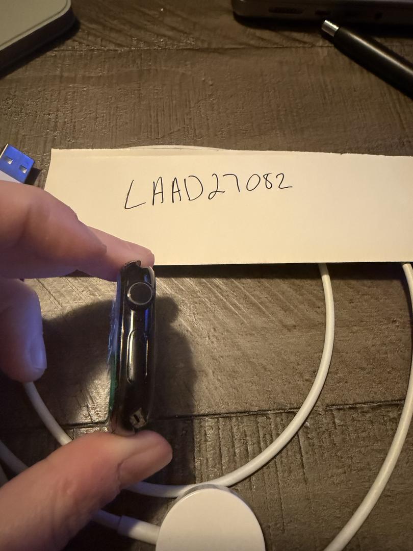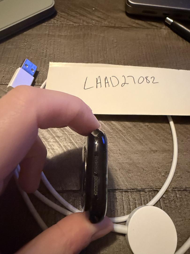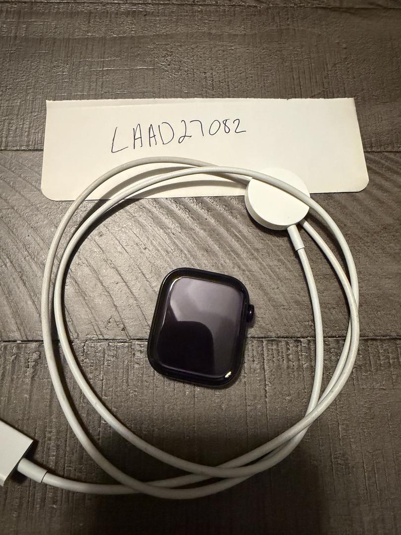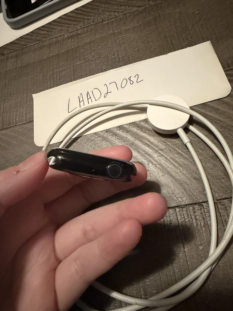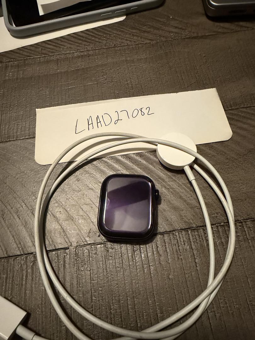 Apple Watch Series 10 GPS only unlocked in 64 GB black aluminum. Apple watch charging cord included.