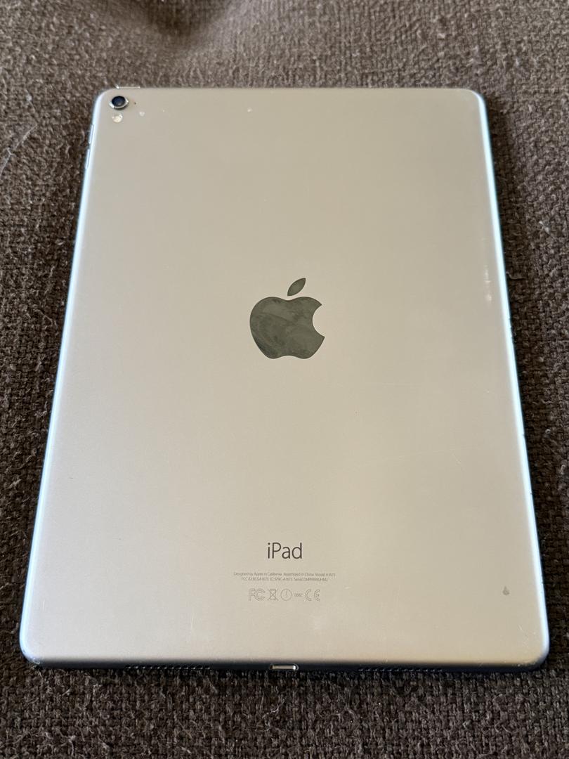 Selling an Apple iPad Pro 9.7-inch (2016), Wi-Fi, 128GB, Space Gray, model A1673. iPad is in excellent condition and fully functional — no cracks, no dents, and no significant imperfections. Touchscreen is responsive, buttons work normally, cameras/speakers function properly, and Wi-Fi connects as expected.
