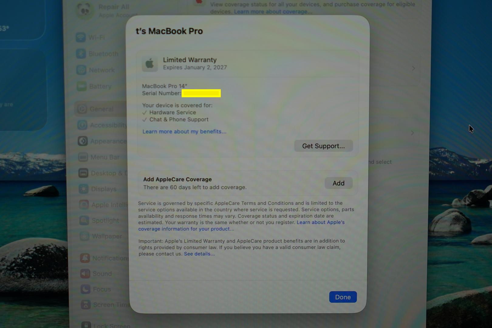 Eligible for AppleCare+ for 60 days from 01/04/2025