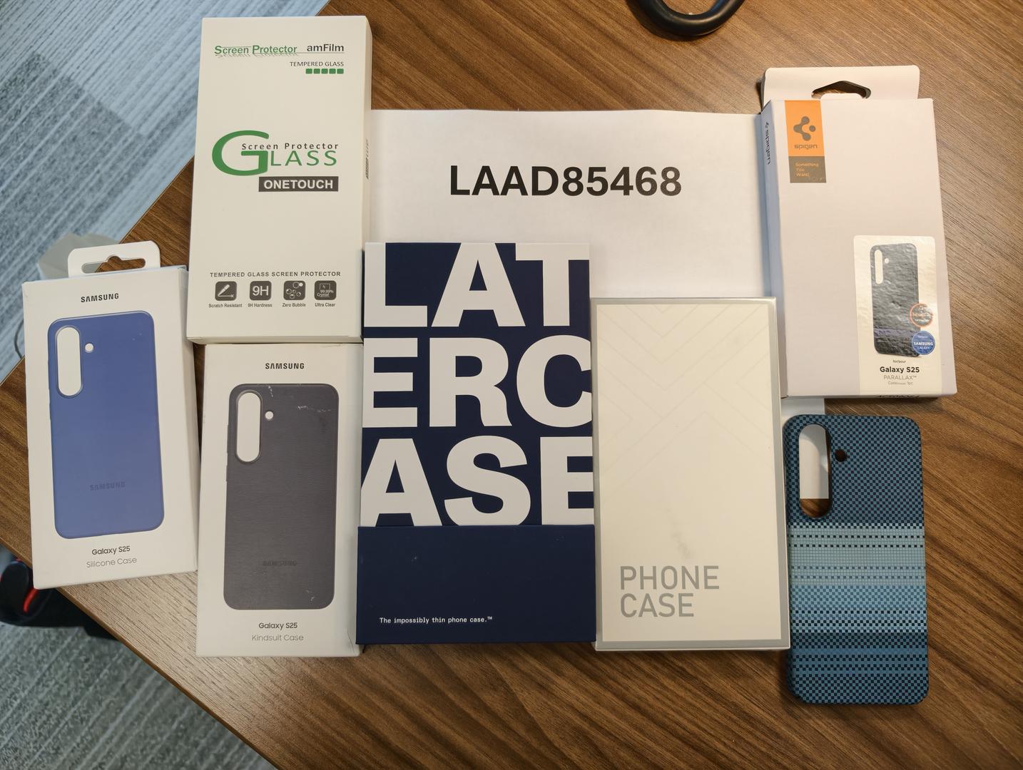 Unfortunately, no box is included but does come with 6 cases and extra screen protectors.