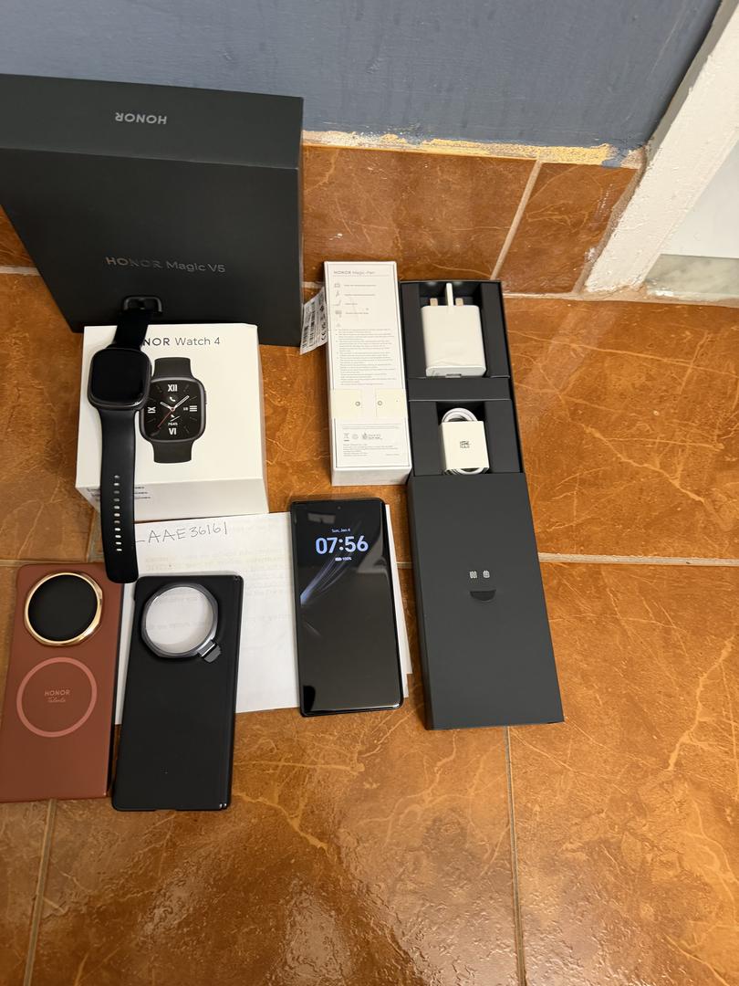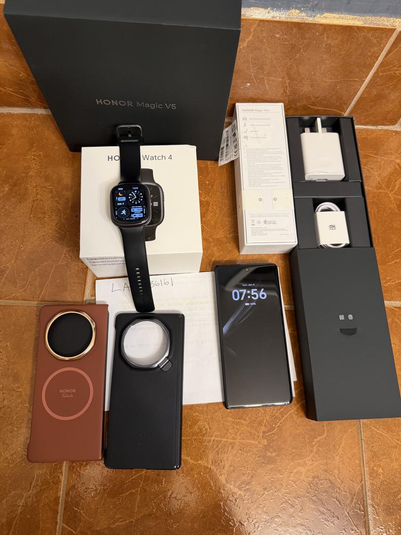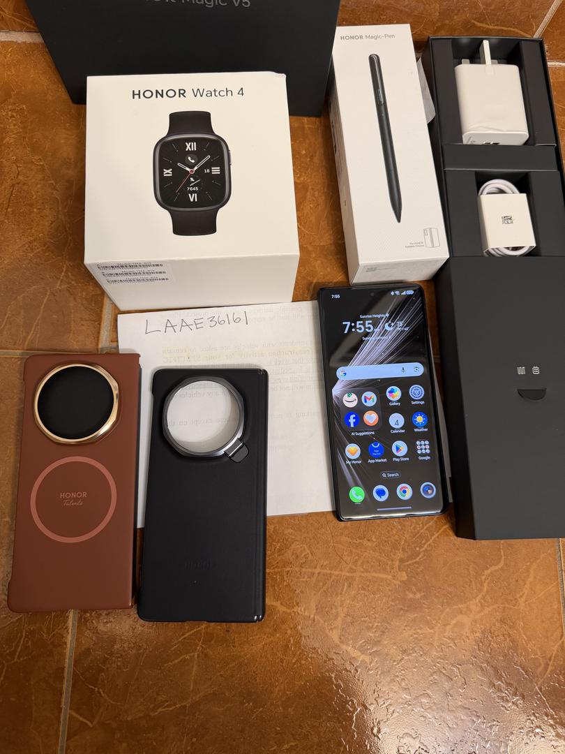 Selling my mint honor magic V5 global edition black color 512+16gb also included in the sale is the honor pencil (sealed) and watch (mint condition). The phone and watch was only use for about a week comes with 2 cases from vivo Everything comes in their original packaging with all original accessories. Check out pictures for complete details.