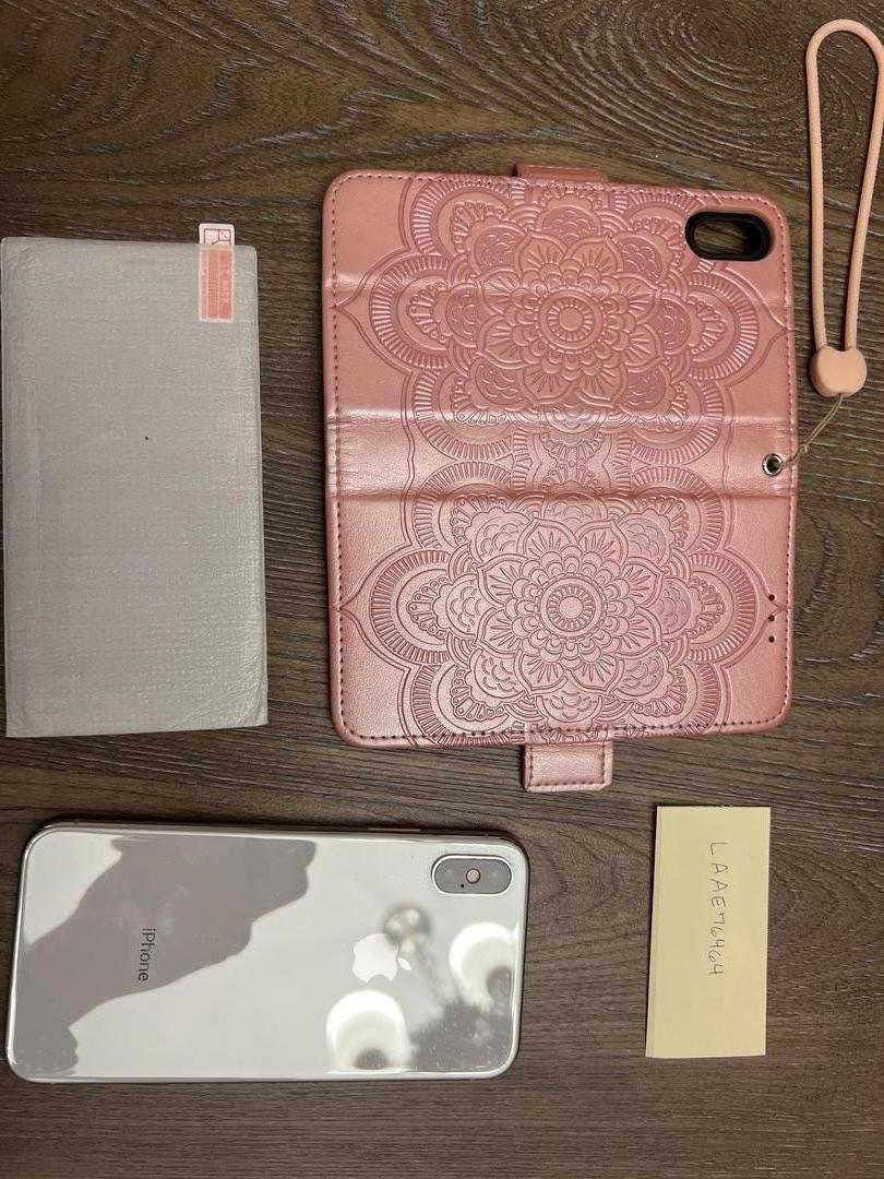 Comes with pink wallet case and tempered glass screen protector.