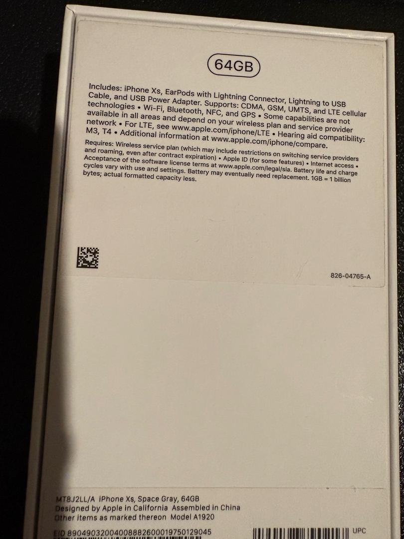 For sale is a brand new Iphone Xs, Space Gray in color. 64 GB, this phone has never been used or taken out of the box. It is listed as "Mint" instead of "New" on this listing due to Swappa's policy since the box was not sealed. The box was opened when I received it from the AT&T store to set it up, however, it went right back in the box and remained there. It was an extra phone I obtained on my old cell phone plan because it was cheaper to add an additional line, even though I didn't need it. The phone is unlocked and can be activated on any plan, however, my old carrier was AT&T just for information purposes.