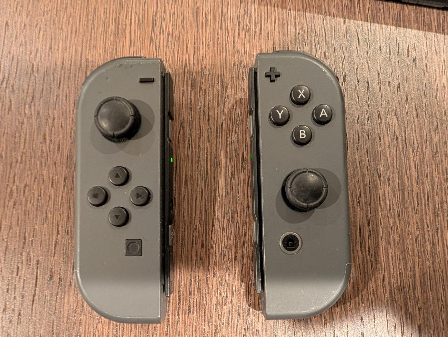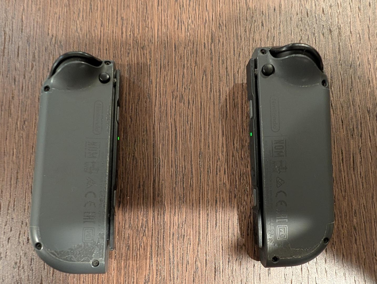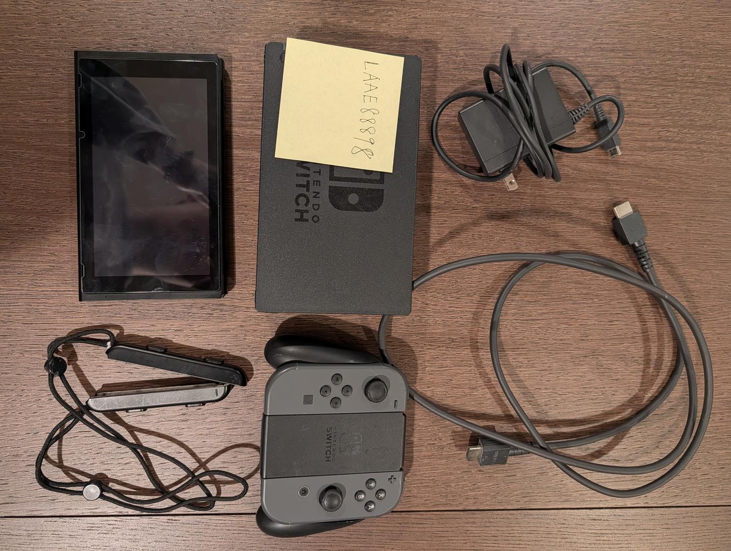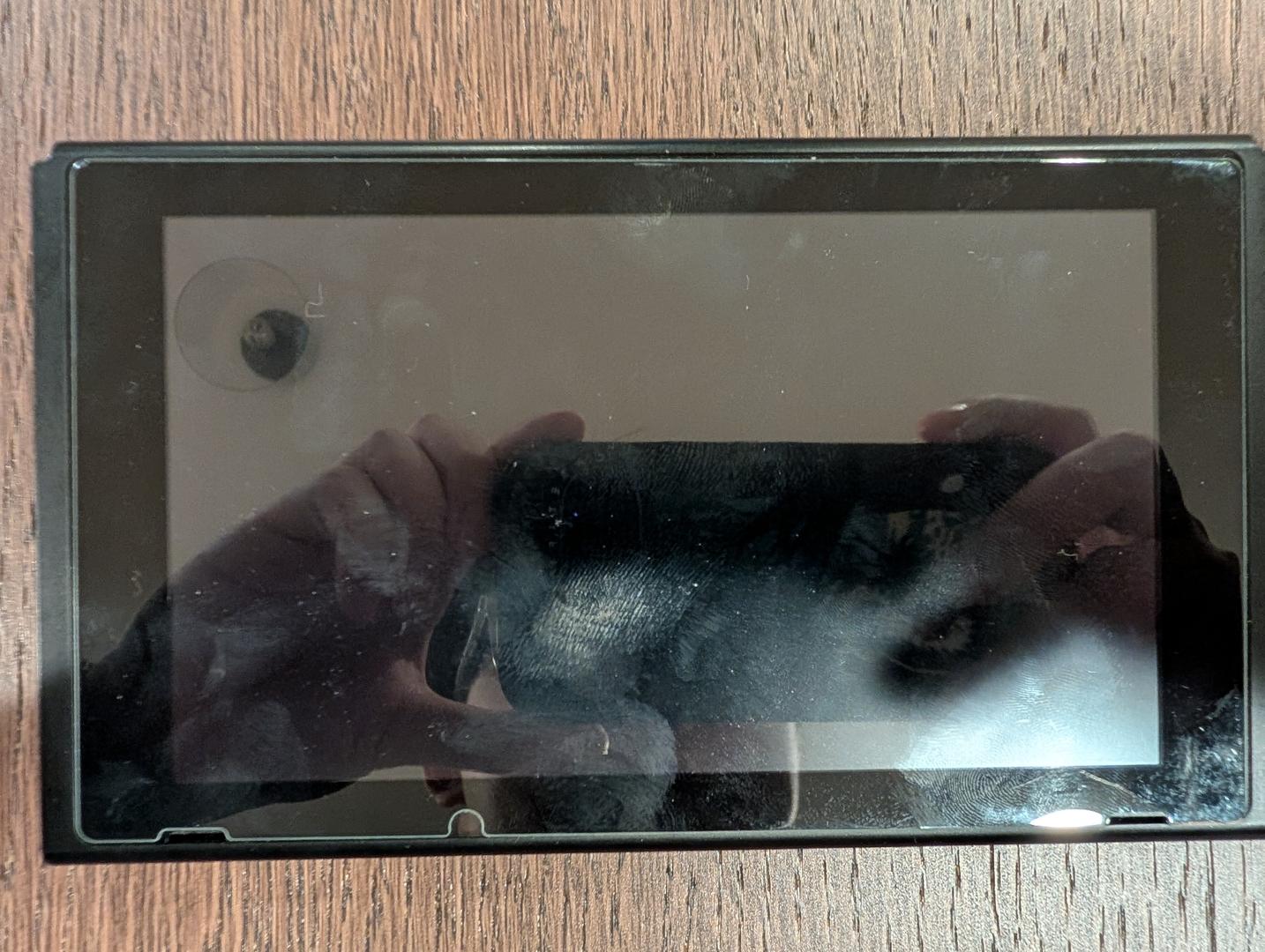 Screen is intact. Joycon was protected by Skin but shows very minor residuals when the skin was removed. The left Joycon hand wrist strap's buckle is damaged, but the the strap is still fully usable.