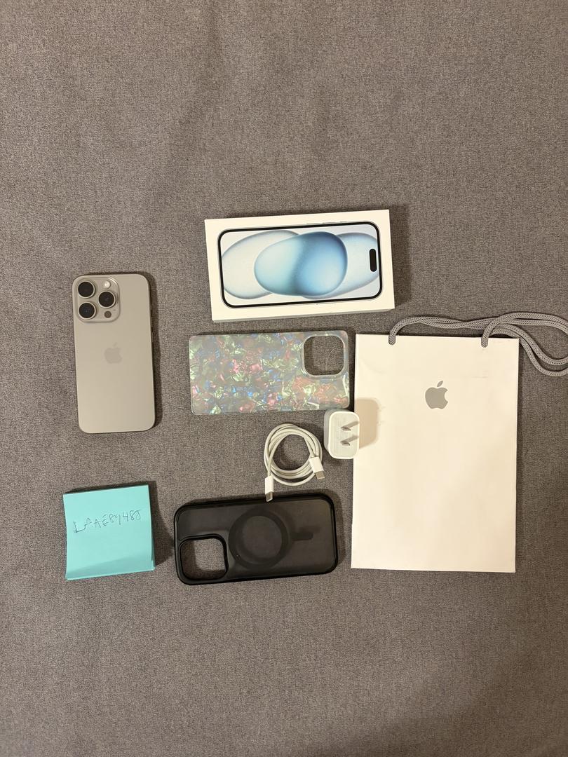 iPhone 15 Pro Natural Titanium Color with two cases