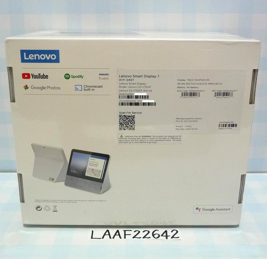 Lenovo Smart Display 7 with Google Assistant|Model: CD-17302F|7" IPS Touchscreen|WiFi|Grey
