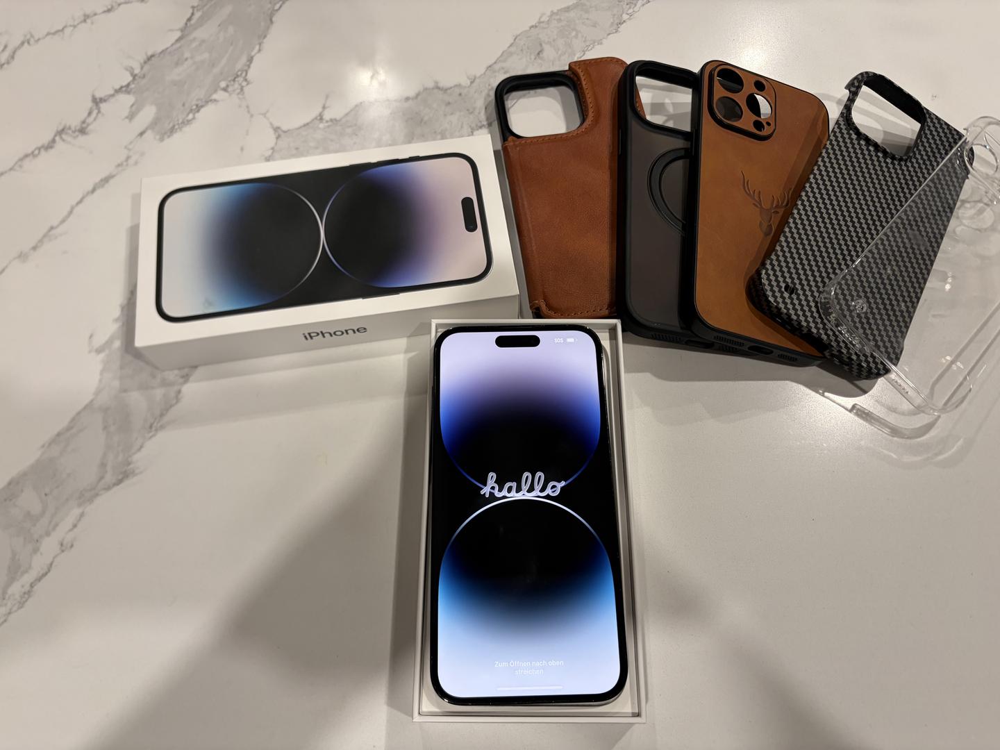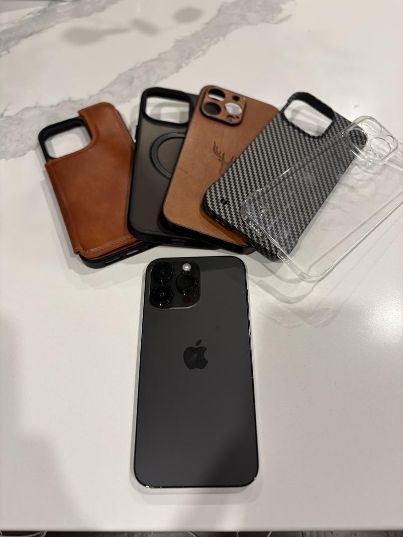 Very good condition iPhone pro max 14! Comes with a ton of different cases. ALSO have a privacy screen protector can throw in. With ORIGINAL BOX!