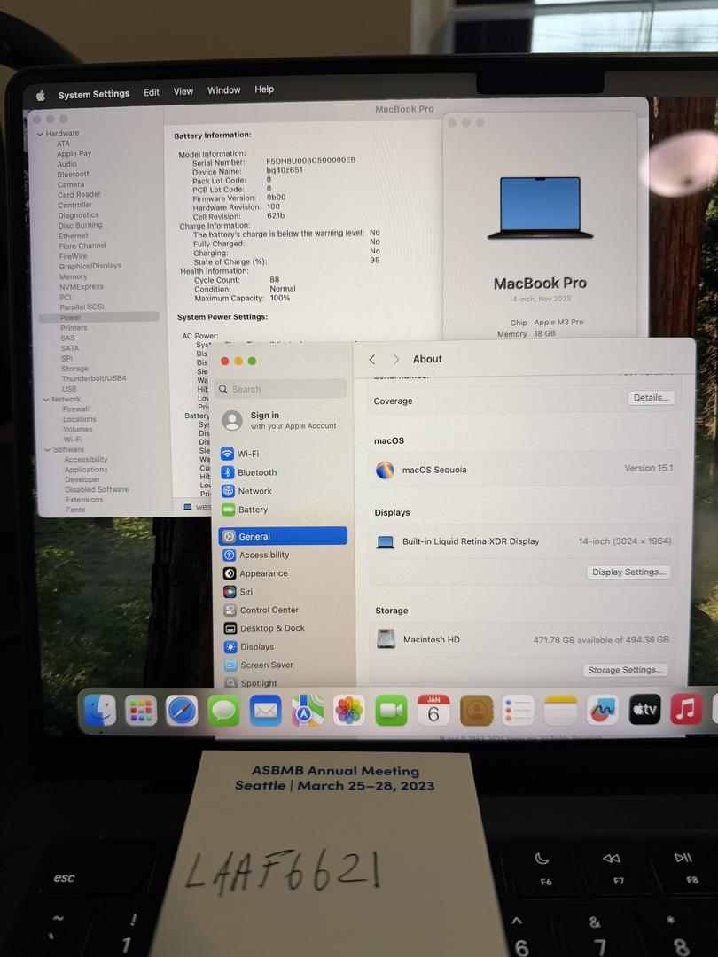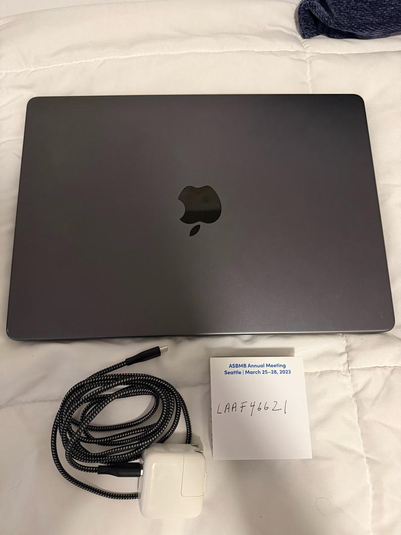 MacBook Pro 2023 • 14" • Space black • 512GB SSD • 18GB RAM • 88 cycles/100% battery health • 9/10 condition; slight signs of normal use on edges from sitting on table