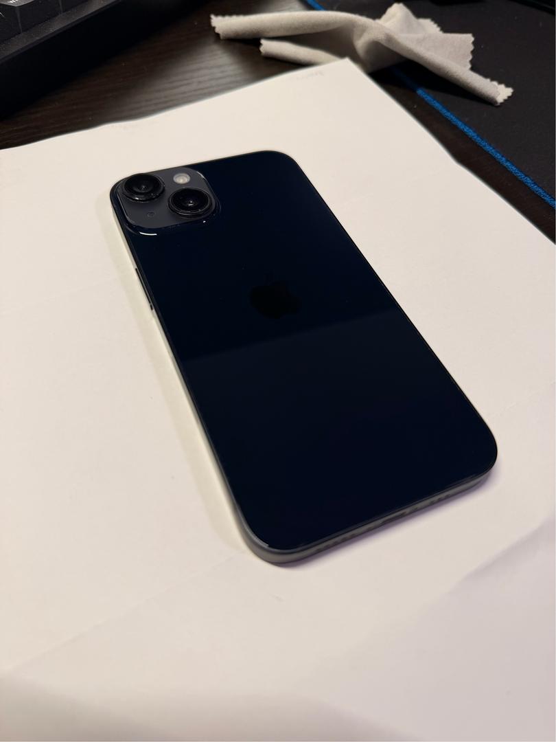 Clean IPhone 14 in pretty good condition. No cracks in screen or parts replaced. Two small chips on left edge of phone.