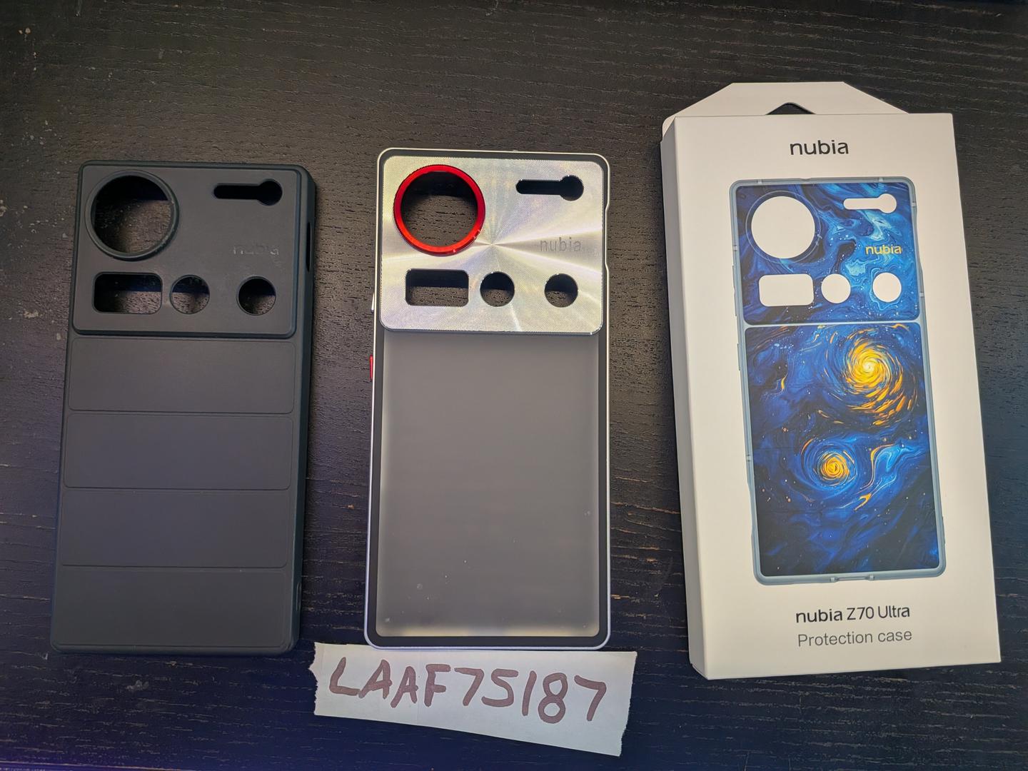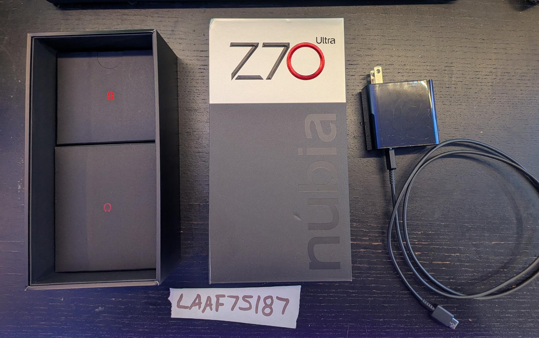 Nubia Z70 Ultra with 3 cases, installed tempered glass screen protector, charger, cable and original box. I never used the Starry Night case so it's still sealed in box.