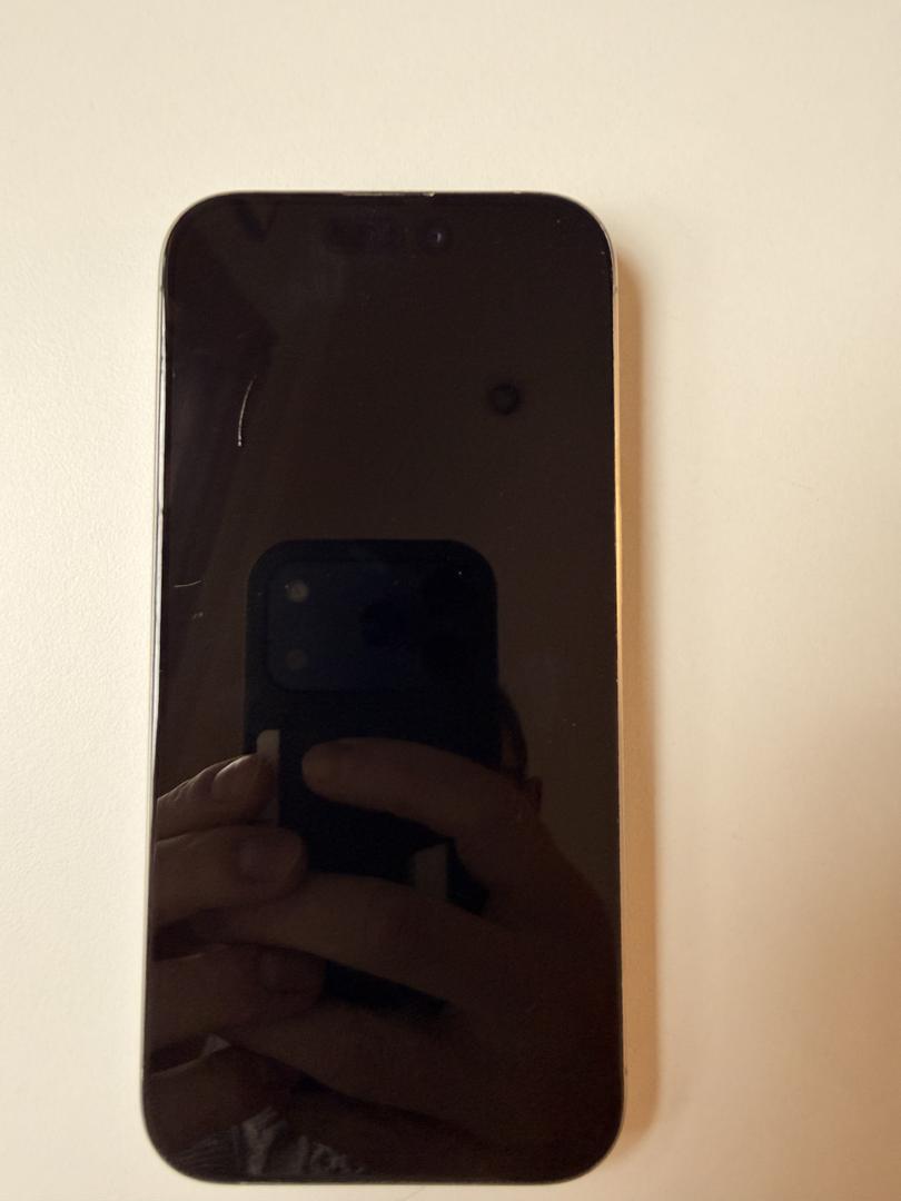 Screen disclosure: There are two small cosmetic scratches on the display—one approx. 1 cm and another about 0.25 cm. They are light, cosmetic only, and do not affect touch, display quality, or Face ID. Please see photos for close-ups.