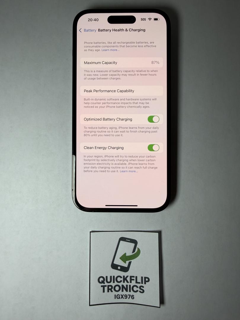π Battery Health: 87%.