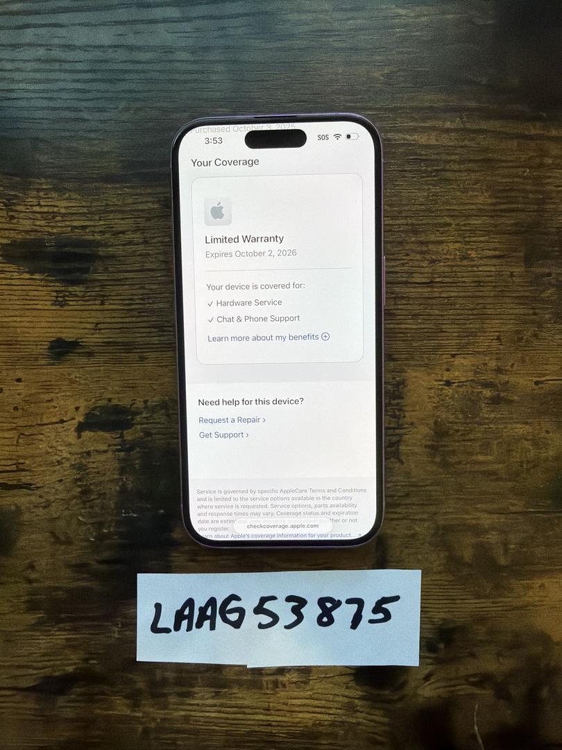 The phone is in like new condition. Frame and screen are excellent and the phone has very little usage on it . It works perfectly and has all original parts, never repaired or refurbished. Battery health is 100% with only 67 charge cycles . Unlocked for any carrier. Currently running iOS 26.0.1 and is under Apple’s factory warranty until 10-2-26.