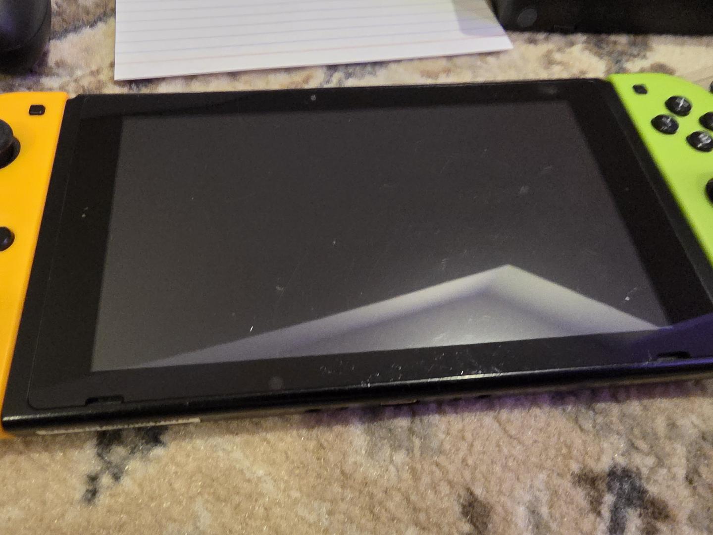 scuffs to the screen and back. Aftermarket joycons ZL gets stuck sometimes.