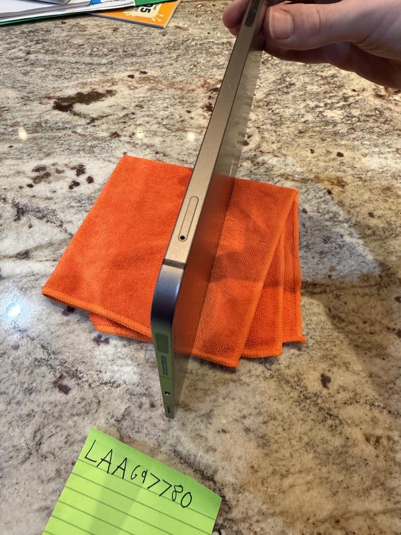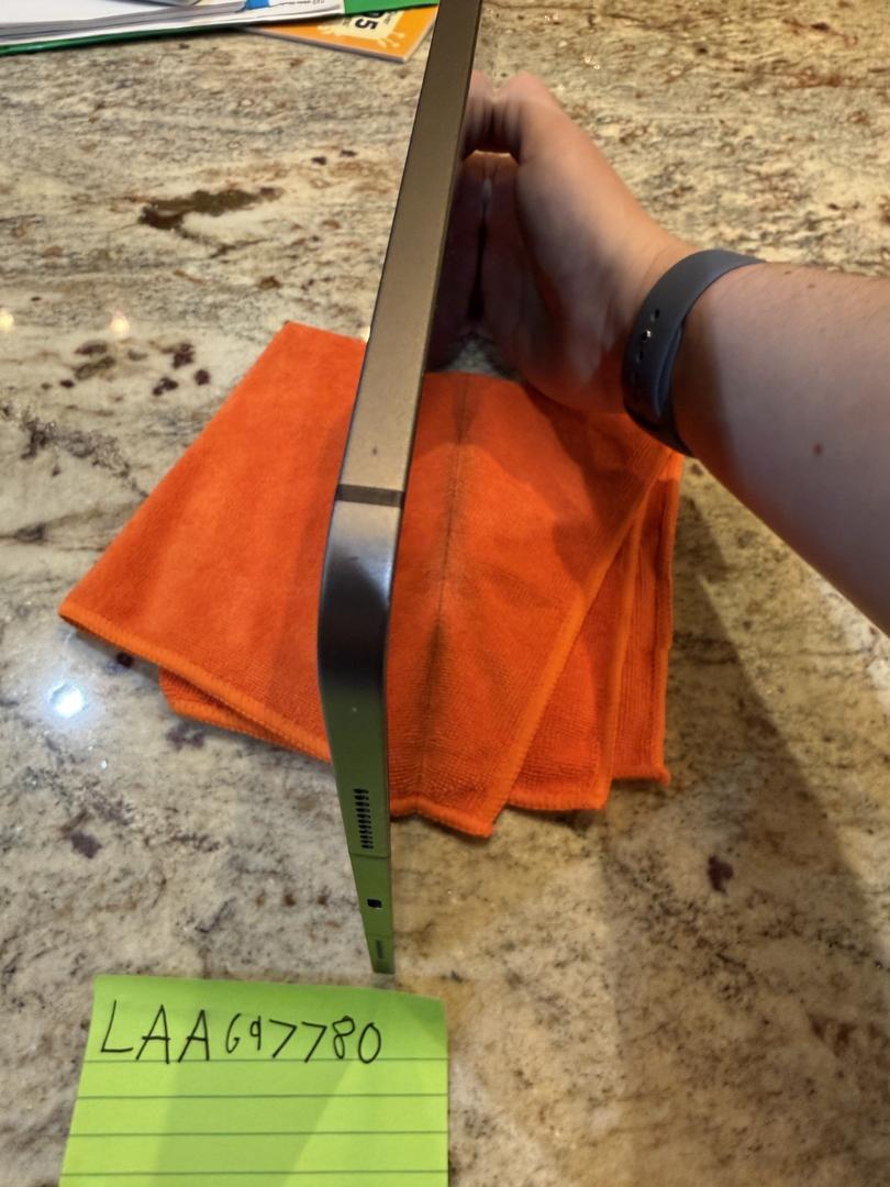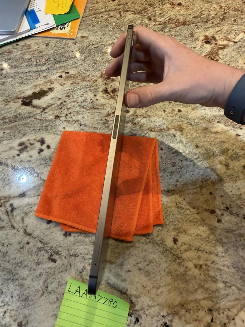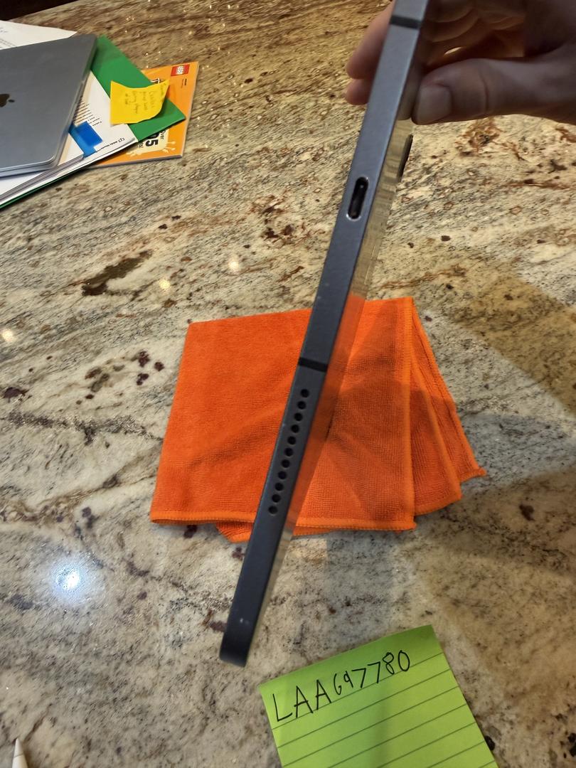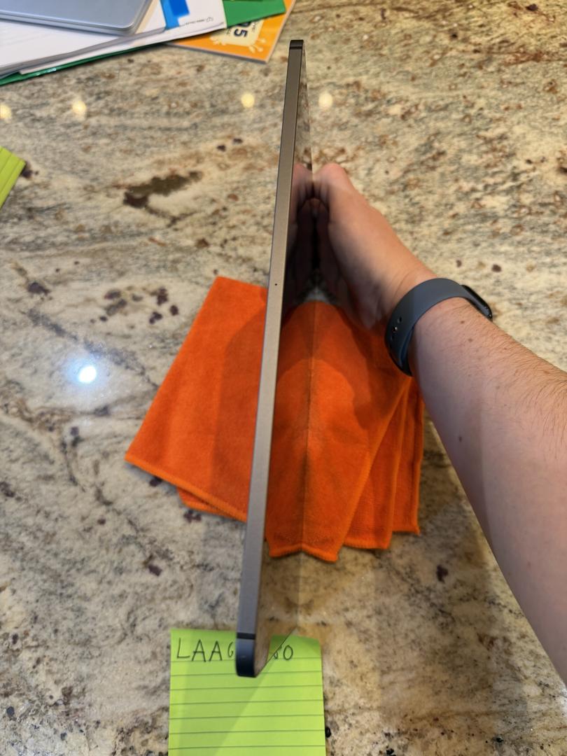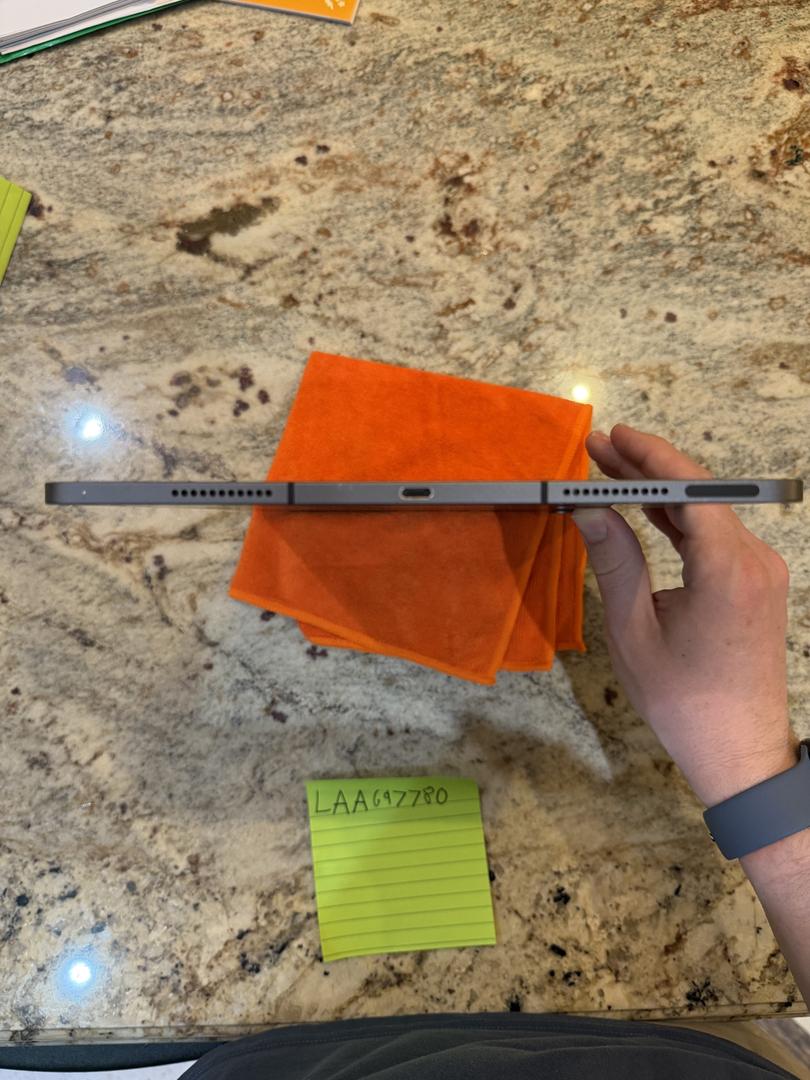 The iPad has a couple of minor scratches on the screen along with heavier wear on the charging port and some scratches along the side of the iPad.