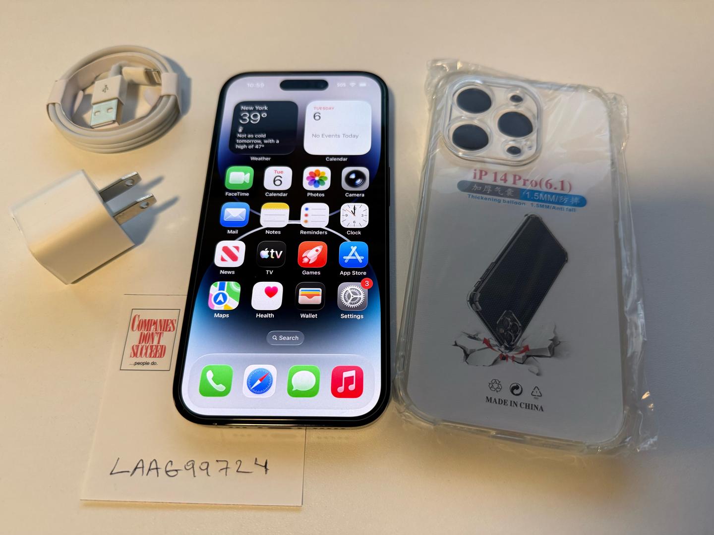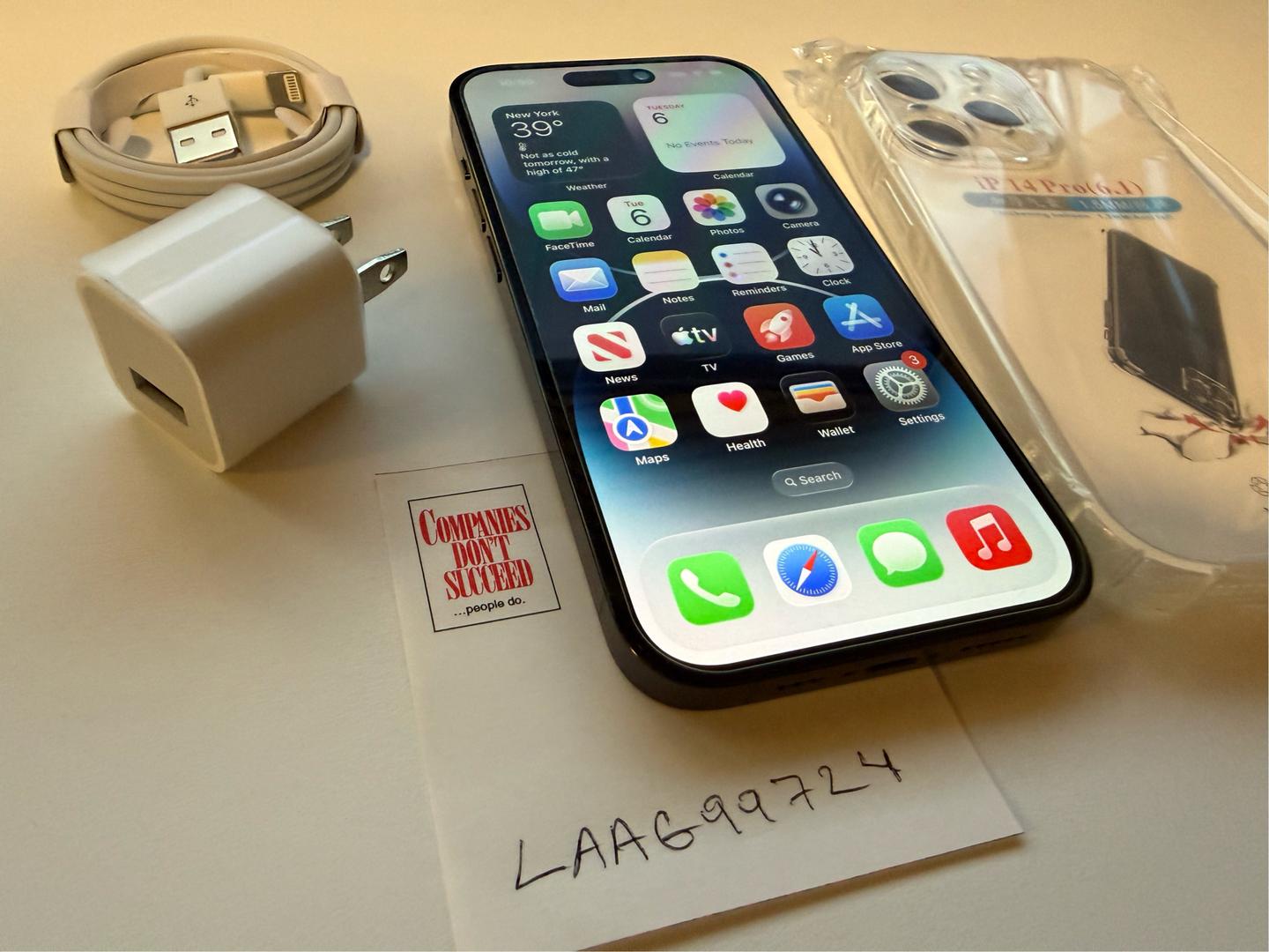 Please note: this iPhone 14 Pro does not come with its box and accessories. It comes with a complimentary new cable, wall charger, new already applied tampered screen protector, and a new clear case. Please see images for details.