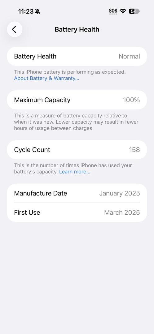 Battery Cycle Count: 158