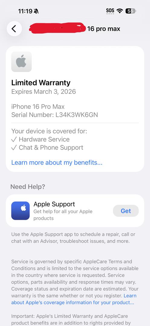 Still has Apple limited warranty until March 3, 2026