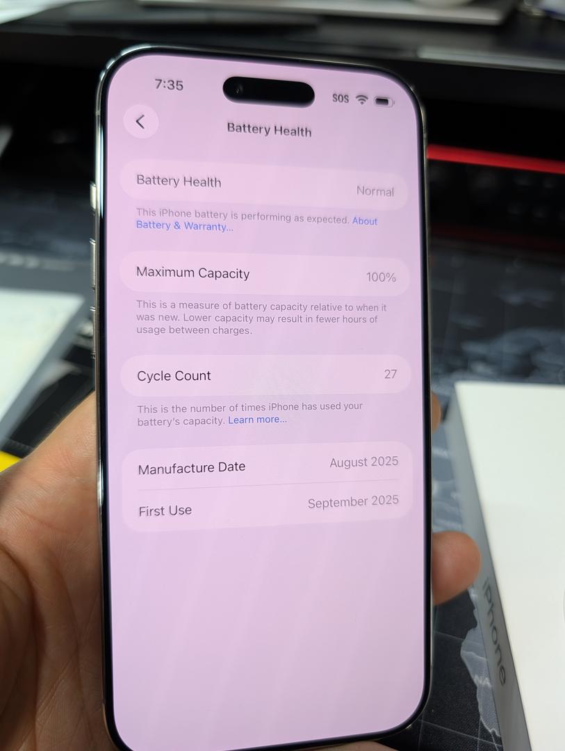 I'm selling my iPhone Air in excellent condition... I did not mark it as mint due to a super small 1-2 lines close to the USB port. I Rarely used it since I spend more time with Android [Pixel] and this is too much for me! Other than the small lines by the USB port, you'll only find fingerprints and dust. I'll try to show this in my pictures but they are very small. Battery Cycle is 27 and Health is 100%