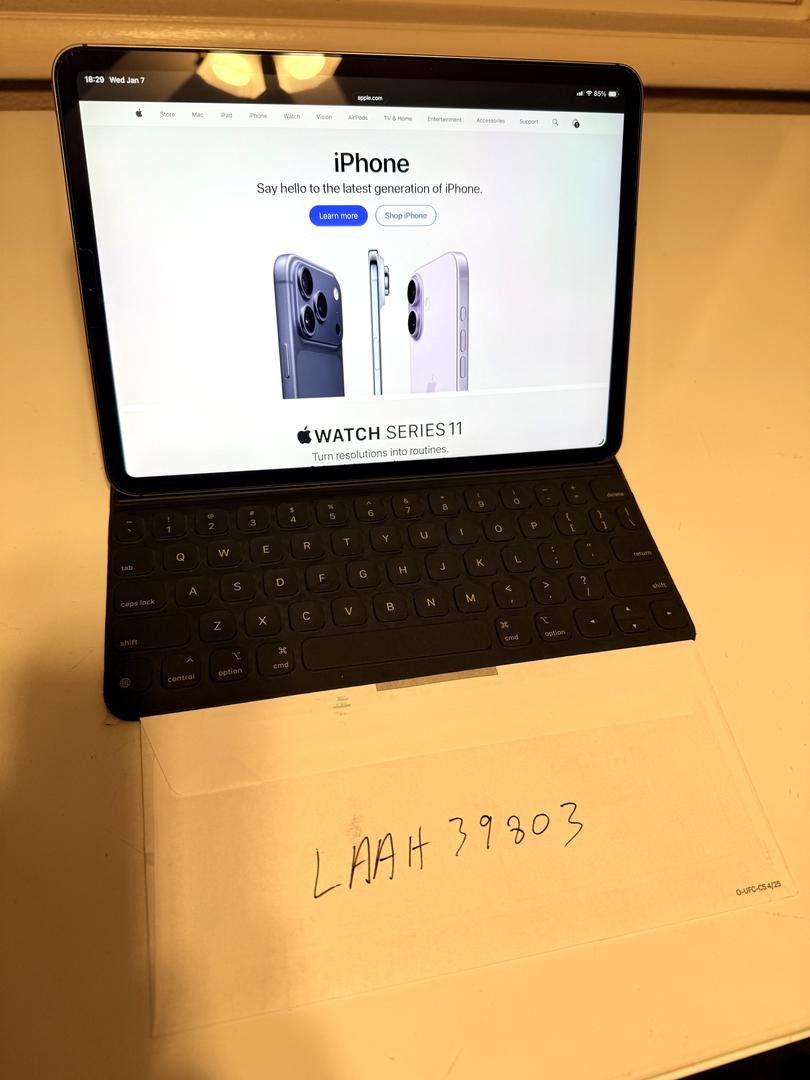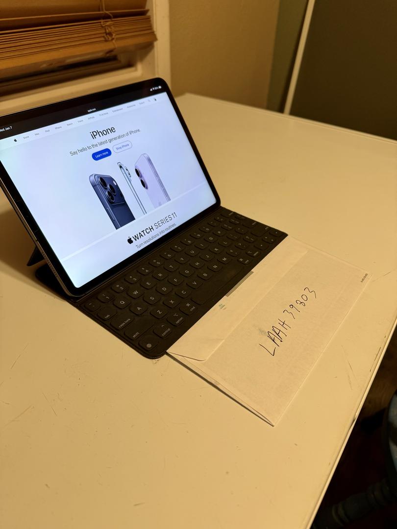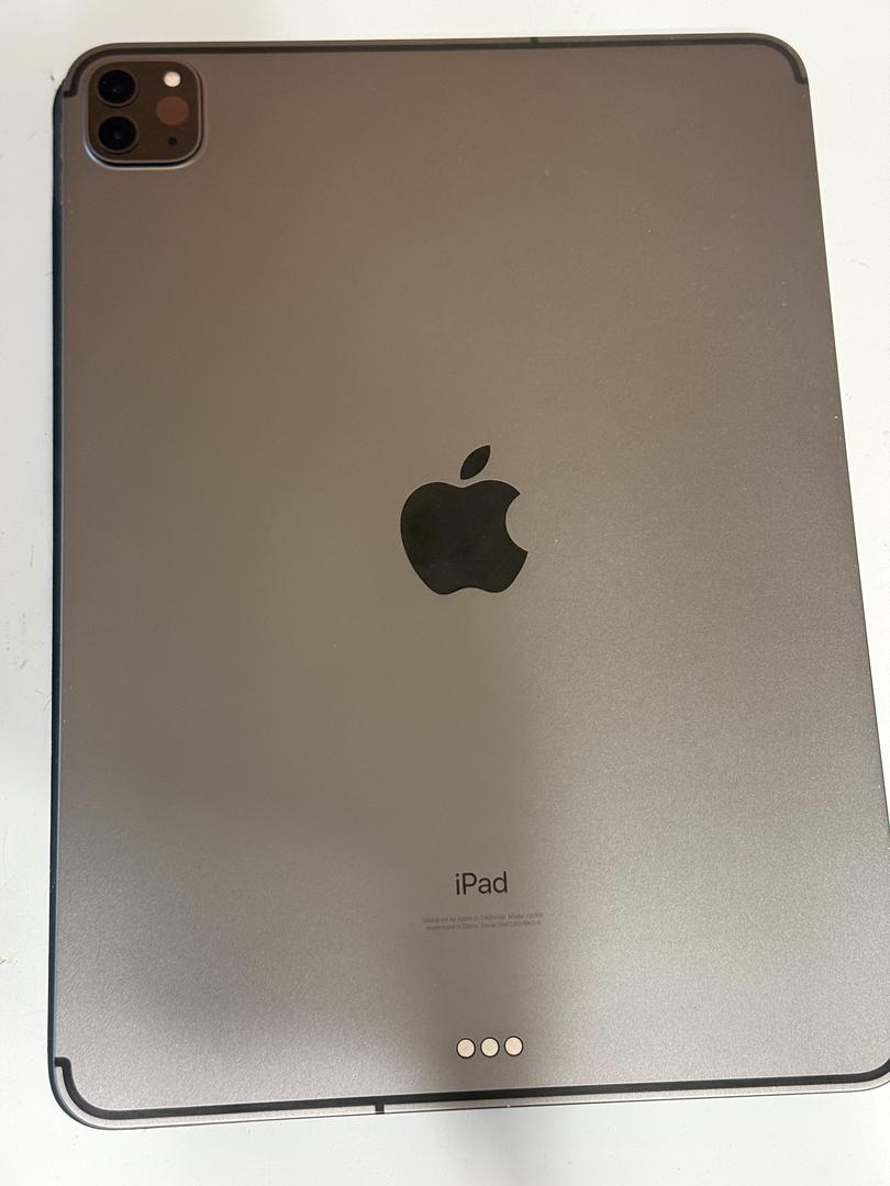 11" iPad Pro 2020 with the A12Z bionic chip. 256 GB storage. Cellular. Comes with a very well worn but usable keyboard folio. Battery is at 88% and shows 327 cycle count. Currently has a glass screen protector.