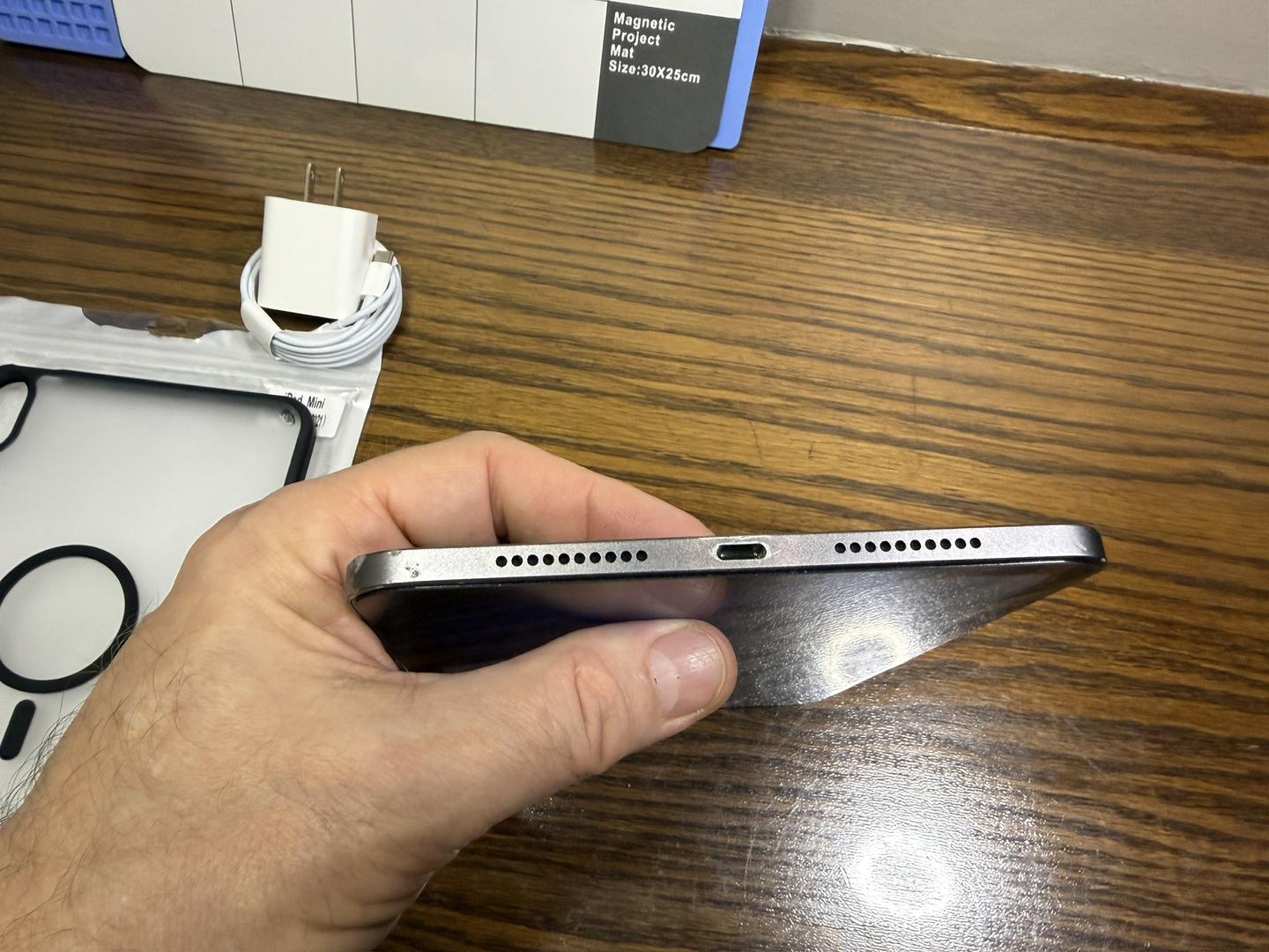 Battery stats not available with iPad Mini 6, but per CoconutBattery it has 595 cycles and it is at 83%. Comes with NEW charger, perfectly installed matte, tempered-glass screen protector, NEW USB-C cord, and NEW $20 case!
