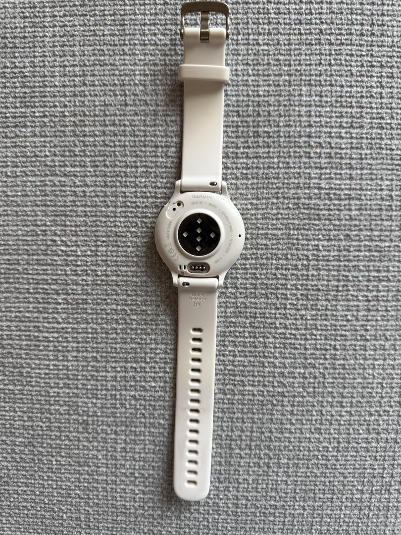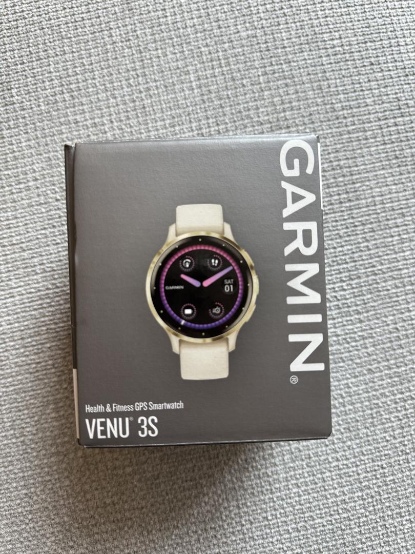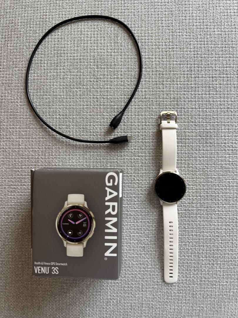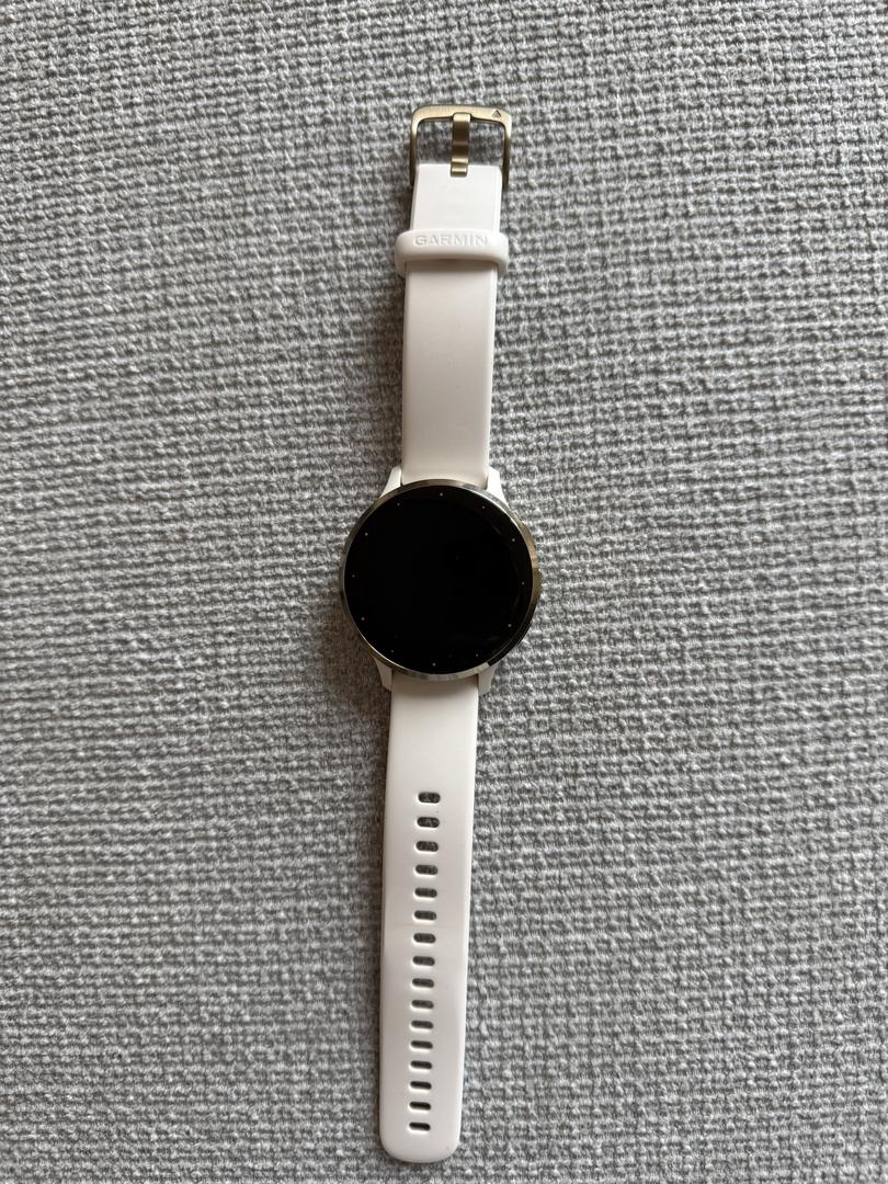 This Garmin is in perfect condition! It has been a wonderful fitness tracker - only selling because recently got a new model. This is the 3S 41MM size and is the Soft Gold Stainless Steel Bezel with Ivory Case Silicon Band. Comes with charger and box.