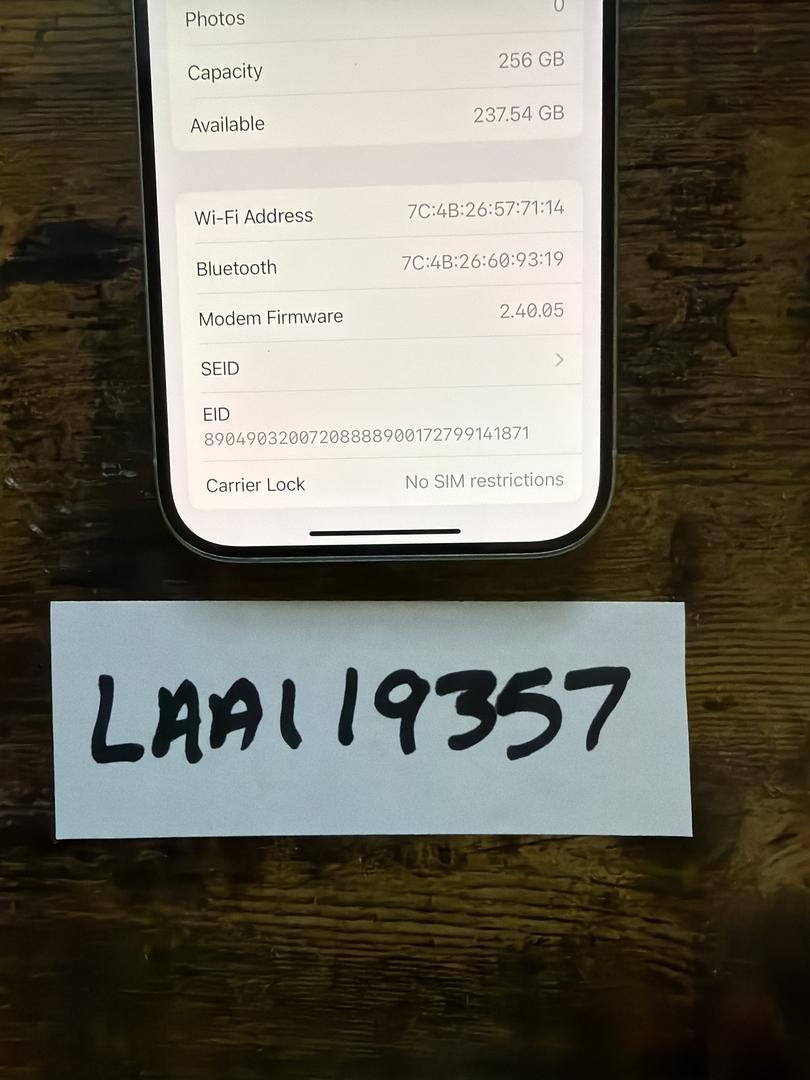 The phone is in like new condition. Very well care for and was always in a case with a screen protector . Battery health is 90%. Unlocked for any carrier and is currently running iOS 18.3.1. Clean IMEI with no iCloud lock. All original parts, never repaired or refurbished. It is the larger 256 GB storage option. No remaining factory warranty.