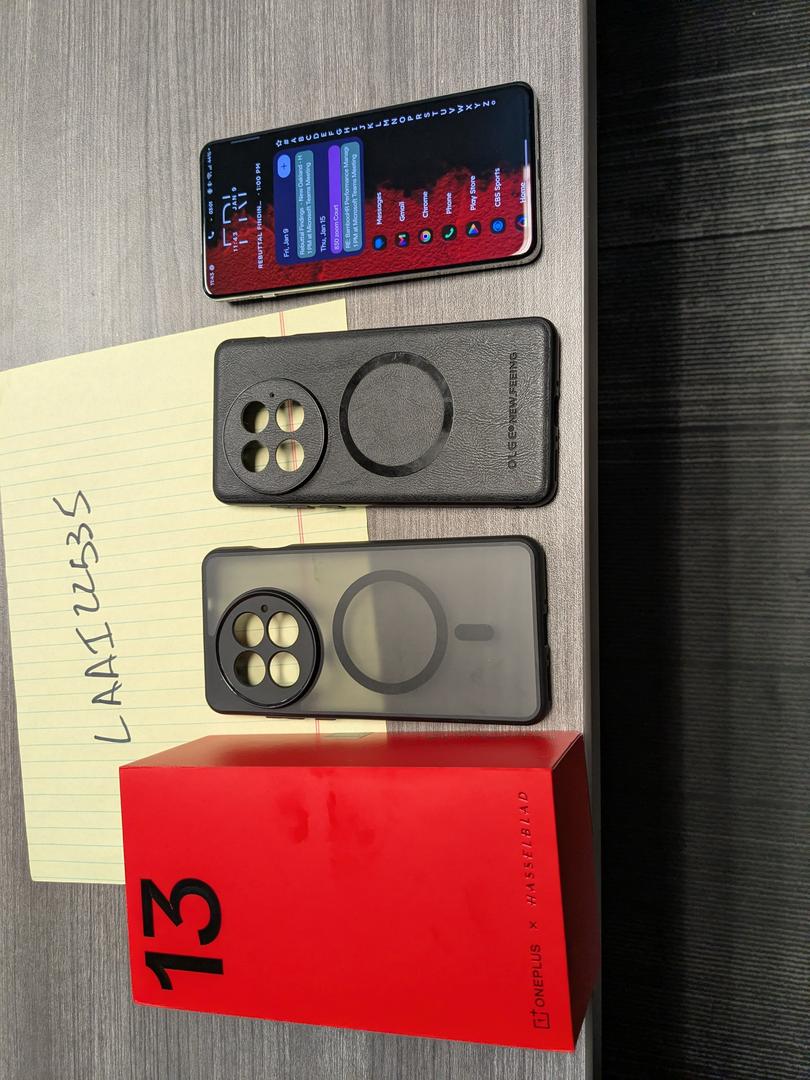 Mint condition Oneplus 13 16gb Ram 12gb Rom. Purchased in July 2025. Includes original charger, original box and 2 cases. Battery health 100%. See pictures.