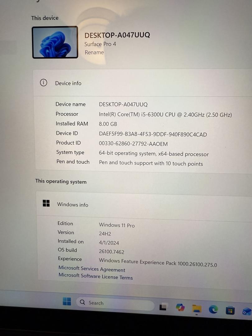 Microsoft Surface Pro 4/8GB RAM/256GB SSD/Touchscreen/Windows 11/Fully Functional/Original Charger