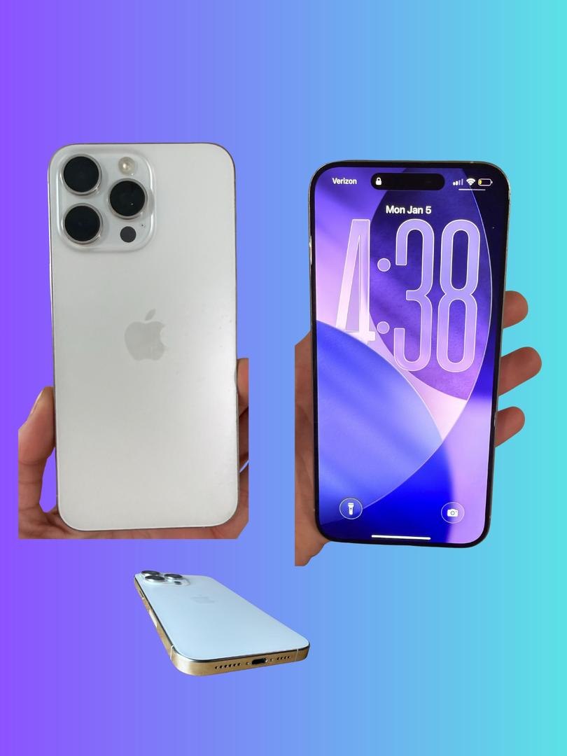 Unlocked white iPhone 15 Pro Max with 256GB of storage in excellent condition. The screen and back glass are clean with no cracks or scratches. Cameras are spotless and work perfectly. The only cosmetic flaw is a small mark on the metal edge near one corner, which is minor and purely cosmetic.