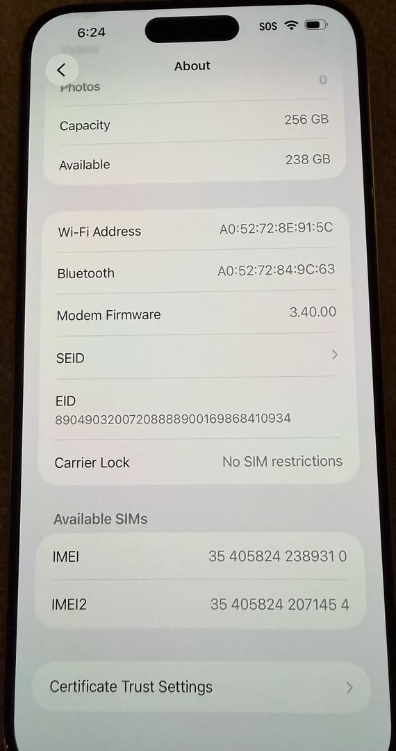 Battery health 85%. Fully functional. Mint condition. Cosmetically no scratch or dent.
