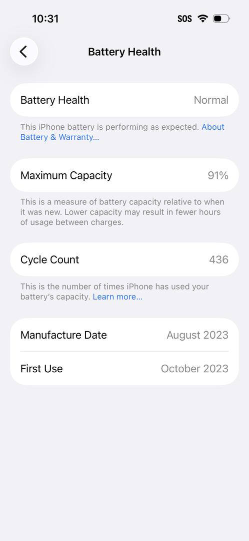 Battery Health 91%