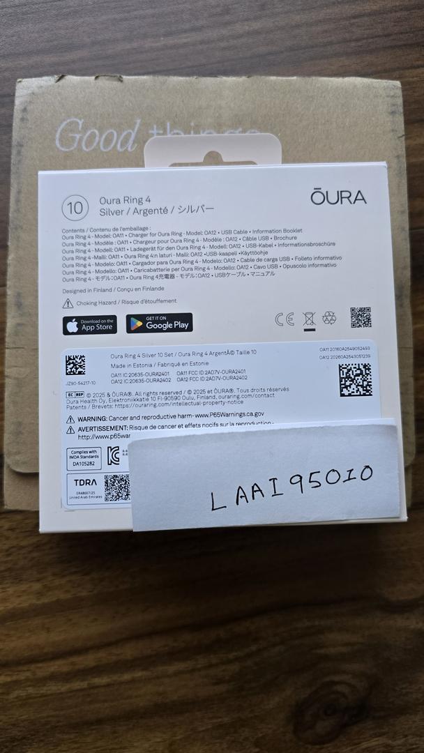 I have a brand new Oura Ring 4, Silver color in Size 10 available for sale. The ring is still in the factory sealed box, unopened.